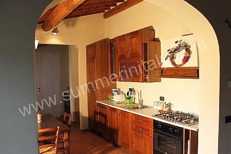 You will be able to enter the kitchen from the living room. It is equipped with a four-burner gas cooker, an electric oven, a refrigerator with freezer, a dishwasher, an Italian-style coffee-maker, an American-style coffee-maker (bring your filters!), a toaster and a kettle. There is a table to seat four guests. From the kitchen a French door will take you to the garden.