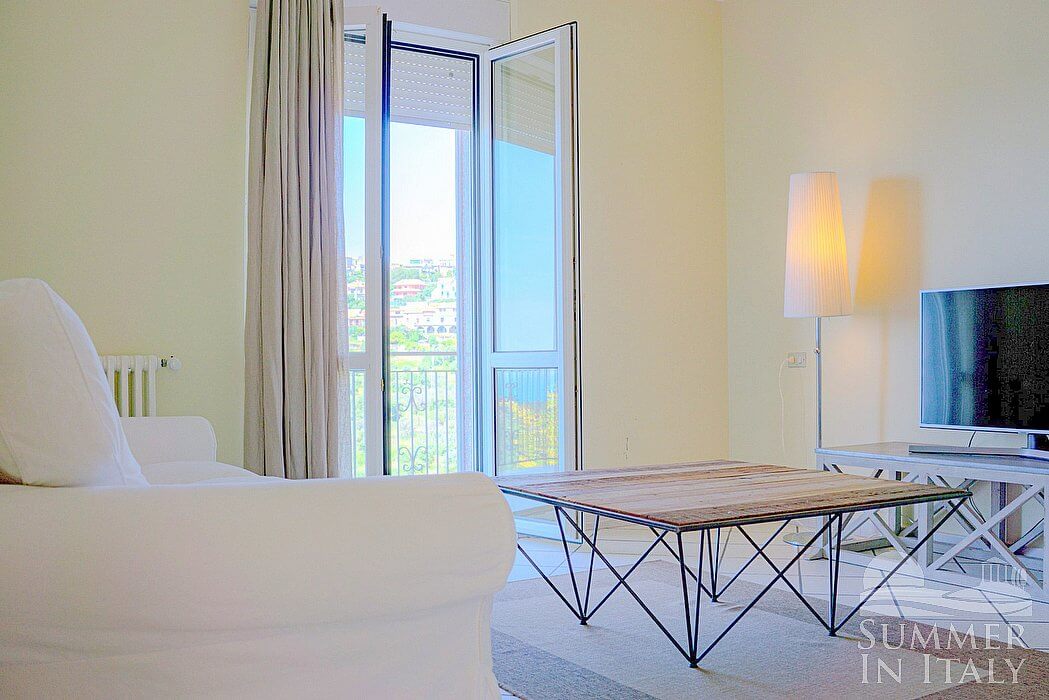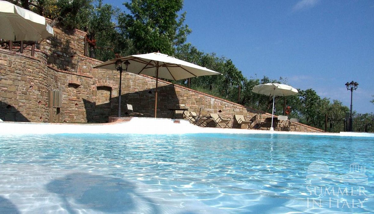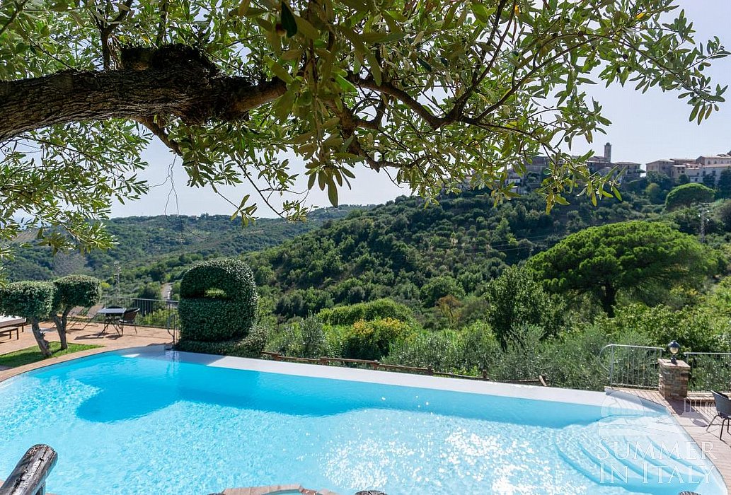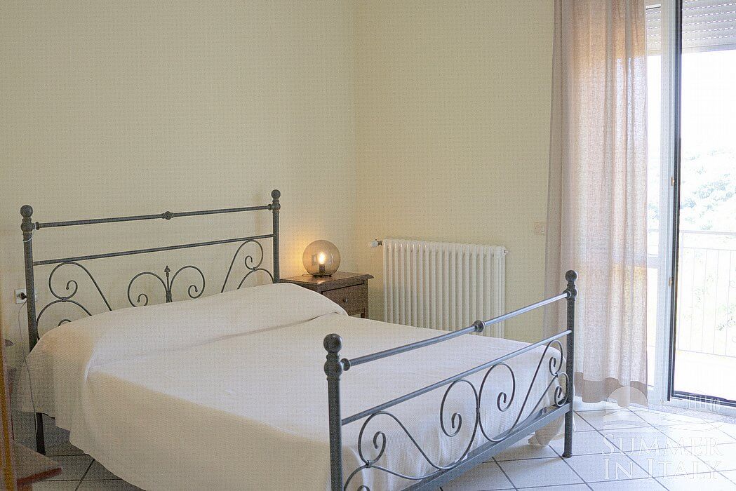 You will reach the swimming pool from the garden going down a stairway which consists of approximately 15 steps. The pool is 8 meters (26 feet) large by 14 meters (46 feet) long, from 80 centimeters (2.6 feet) to 1.5 meters (5 feet) deep. The swimming pool has a sinuous shape. The area is equipped with a table, chairs, sun umbrellas, deck chairs, sun loungers and an external shower. From the swimming pool you will enjoy a splendid view of the valley and of the sea at a distance. You will share the pool with guests staying at 3 other apartments. The swimming pool is open from the beginning of June until the end of September, from 9 am to 7 pm.