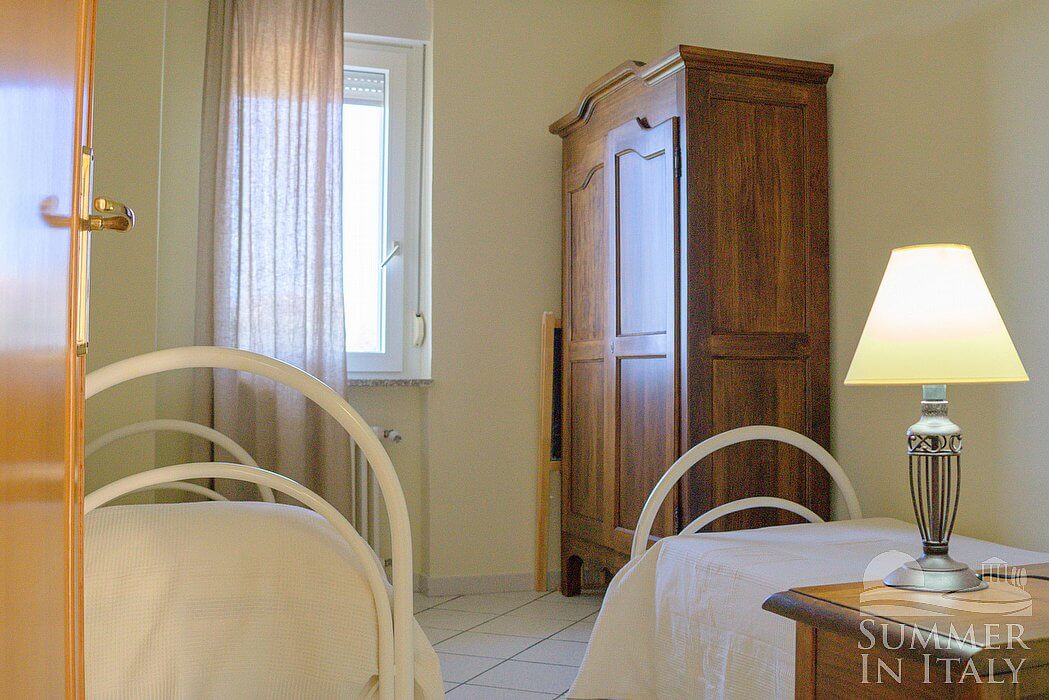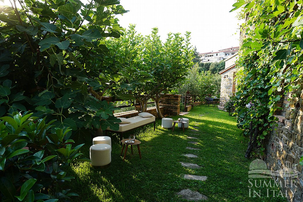 The garden is 250 square meters (2690 square feet). It is partly shaded by olive and lemon trees. You will be able to reach it from the swimming pool area. From the garden you will enjoy a fascinating view of Casal Velino and, partially, of the sea at a distance. You will share the garden with the other guests staying at the complex.