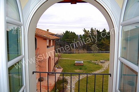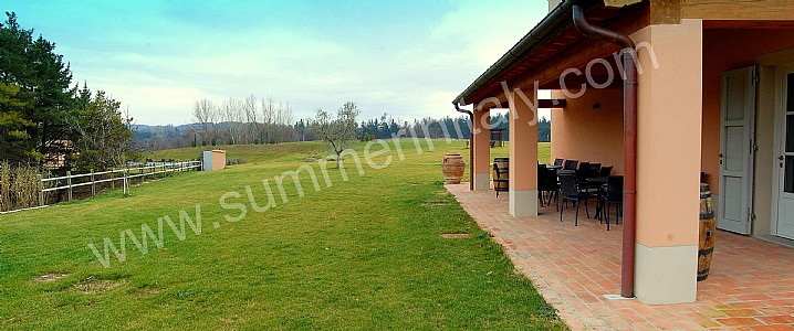The garden is 10000 square meters (108000 square feet) large. It is partly shaded by a gazebo. It is equipped with a table and chairs. From the garden you will enjoy a splendid view of the forest that surrounds the estate and of the vineyards. You will share the garden with the other guests staying at the complex.