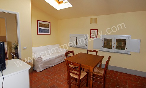 Casa Sagina D is a welcoming apartment surrounded by meadows and by green hills. It sleeps four people. It is approximately 60 square meters (645 square feet). It features a shared swimming pool, two shared patios, a shared garden, air conditioning (please read description below to check in which rooms the units are installed), winter heating and WI-FI Internet access.