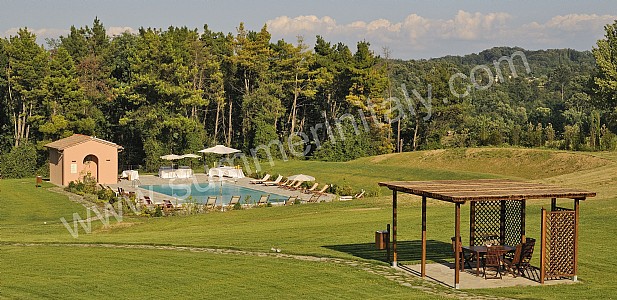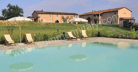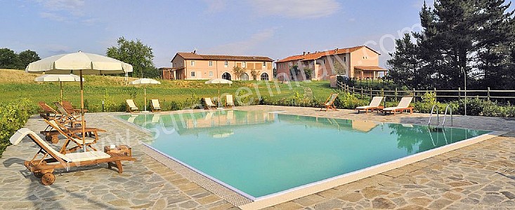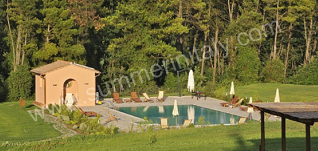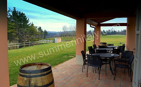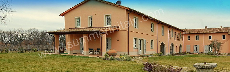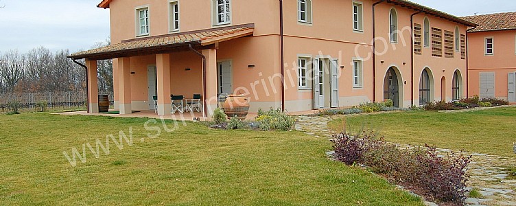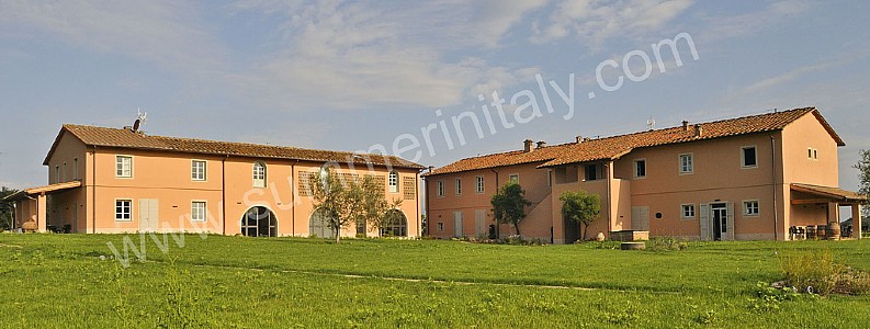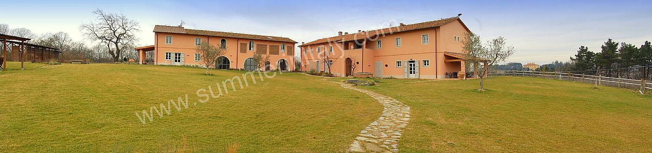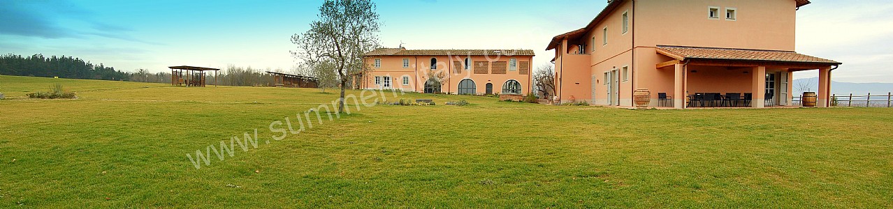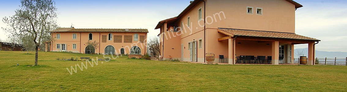 The two houses are situated in the heart of Tuscany, blending into the magnificent hilly landscape that is found in this area. Villa Sagina is surrounded by vineyards, green pastures and woods.