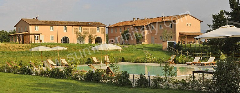 Villa Sagina is a rural complex of twelve apartments divided between two sprawling farmhouses dating back to the 1700s that once belonged to a noble Tuscan family.