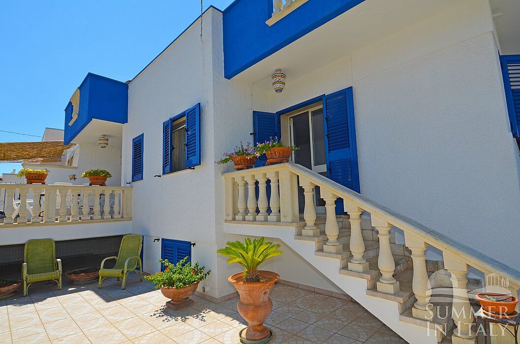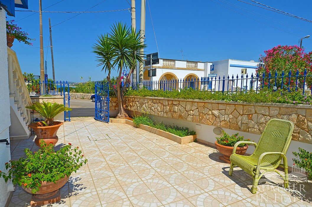 You will reach Casa Sciro from the main entrance of the building going up a route that cuts through the patio and includes approximately eight stairway steps.