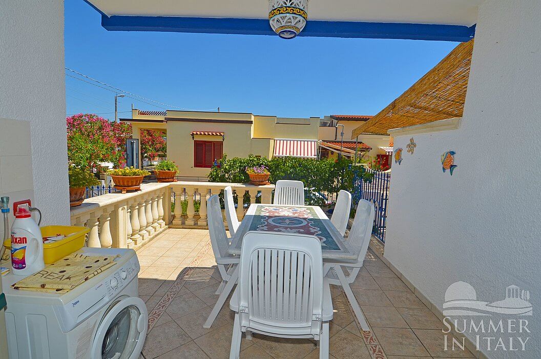 The terrace is 20 square meters (215 square feet) large. It is partly shaded. It is equipped with a table and chairs. Here you will find also a washing machine, an iron and an ironing board at your disposal. From the terrace you will have a nice view of the surrounding buildings and, partially, of the sea.