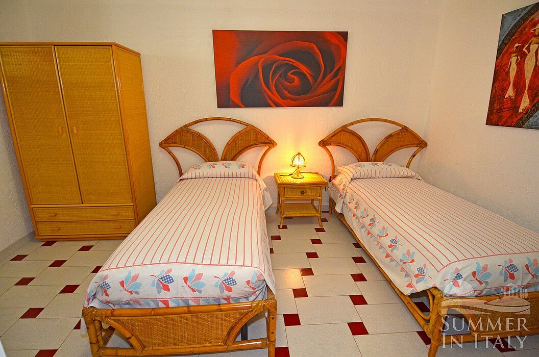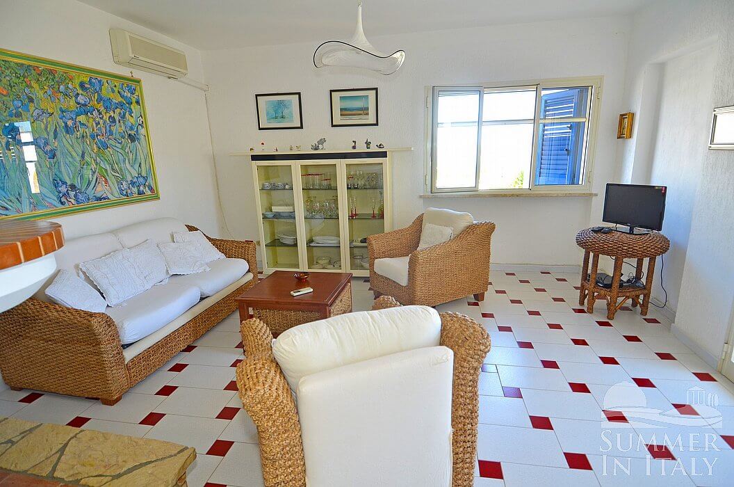 Casa Sciro is a cheerful two-story independent house situated at a short distance from the beach. It sleeps ten people. From Casa Sciro you will enjoy a charming view of the sea and of the surrounding buildings. Casa Sciro is 130 square meters (1400 square feet). It features a private terrace, a private patio, air conditioning (please read description below to check in which rooms the units are installed) and WI-FI Internet access.