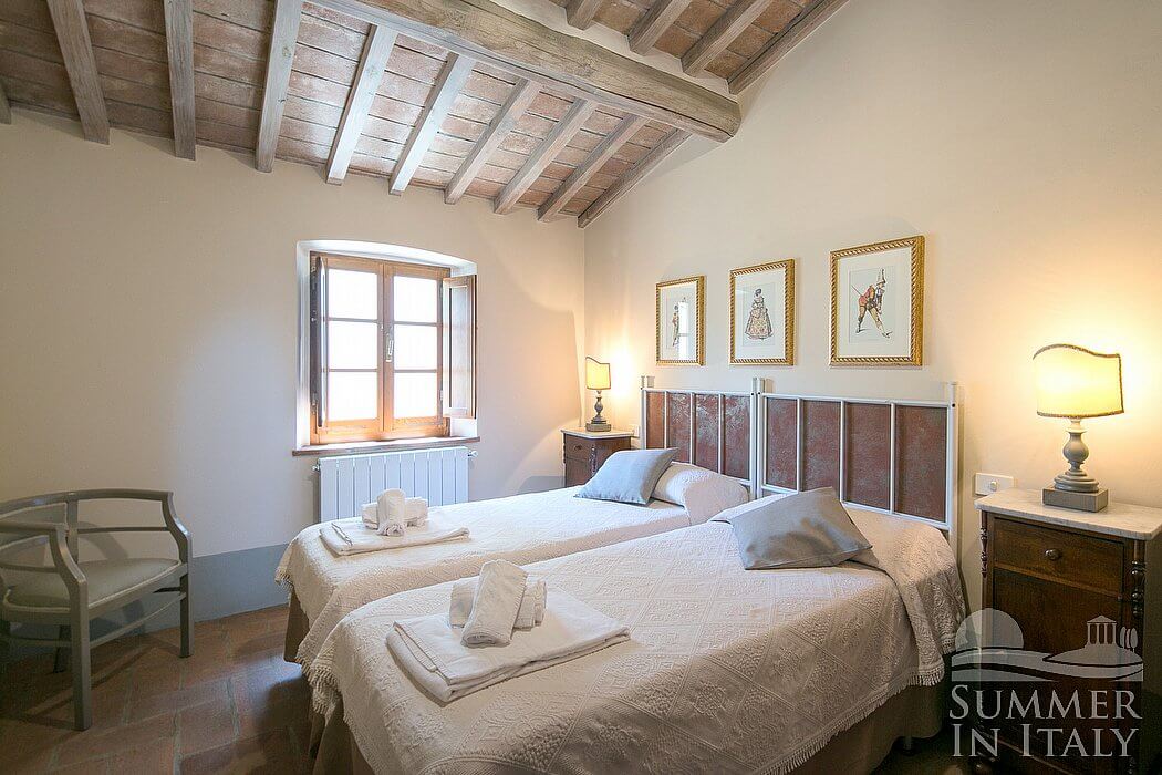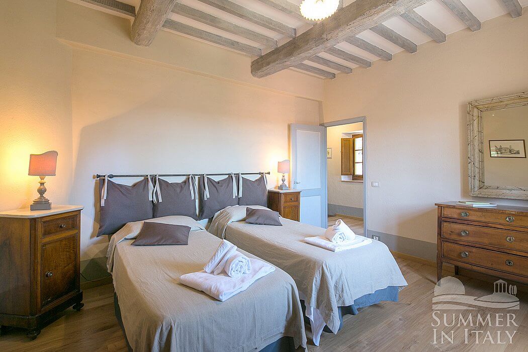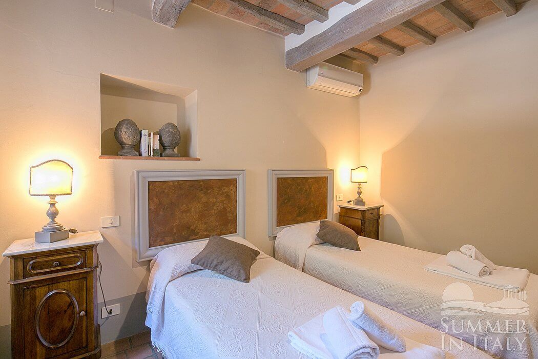 Case Sant'Anna 14 is a characteristic and welcoming two-story age-old farm house made of stone and situated a few miles from the shores of Lake Trasimeno. It sleeps 14 people. From Case Sant'Anna 14 you will enjoy a charming view of the greenery and of the surrounding countryside. Case Sant'Anna 14 is 220 square meters (2370 square feet). It features a private swimming pool and a private jacuzzi pool, a private patio, a private garden, air conditioning (please read description below to check in which rooms the units are installed), winter heating and WI-FI Internet access.