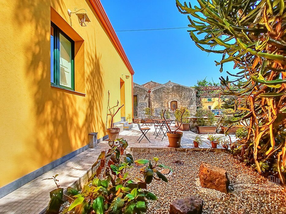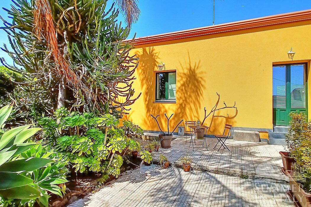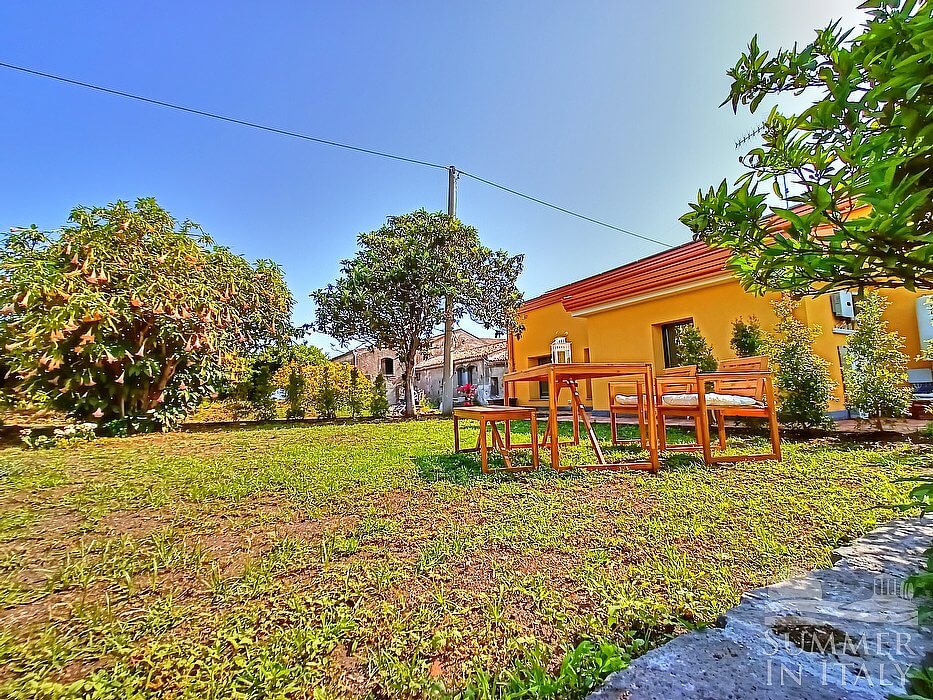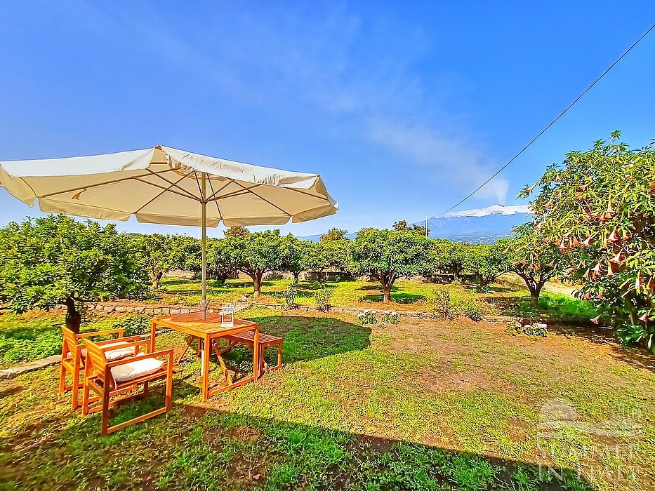Giardino Arancio is a welcoming two-story apartment that is part of an ancient country house surrounded by a citrus garden. It sleeps 17 people. From Giardino Arancio you will enjoy a charming view of the Mount Etna, of the greenery and of the sea at a distance. Giardino Arancio is 270 square meters (2900 square feet). It features a private swimming pool, a private patio, two private gardens, air conditioning (please read description below to check in which rooms the units are installed), winter heating and WI-FI Internet access.