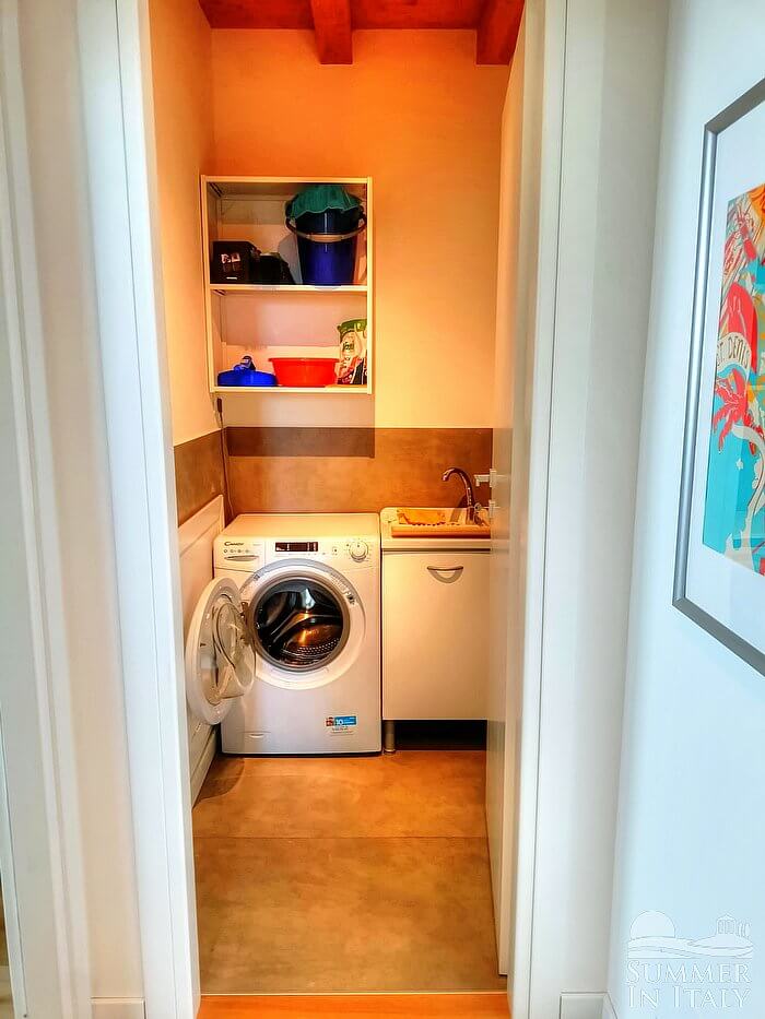 You will be able to enter the sixth bedroom through a corridor. The bedroom has a matrimonial bed (160 cm/63 inches, wider than a queen-size bed) and a single bed (80 cm/32 inches). In this room you will find a television (local channels). From the bedroom you will be able to enter a small balcony through a French door. The bedroom is equipped with an air conditioning/heating unit. This bedroom has an en-suite bathroom, tiled with lucid sea green majolica tiles and equipped with a washbasin, a toilet, a fully enclosed shower and a hairdryer.
