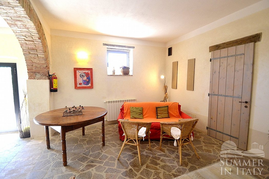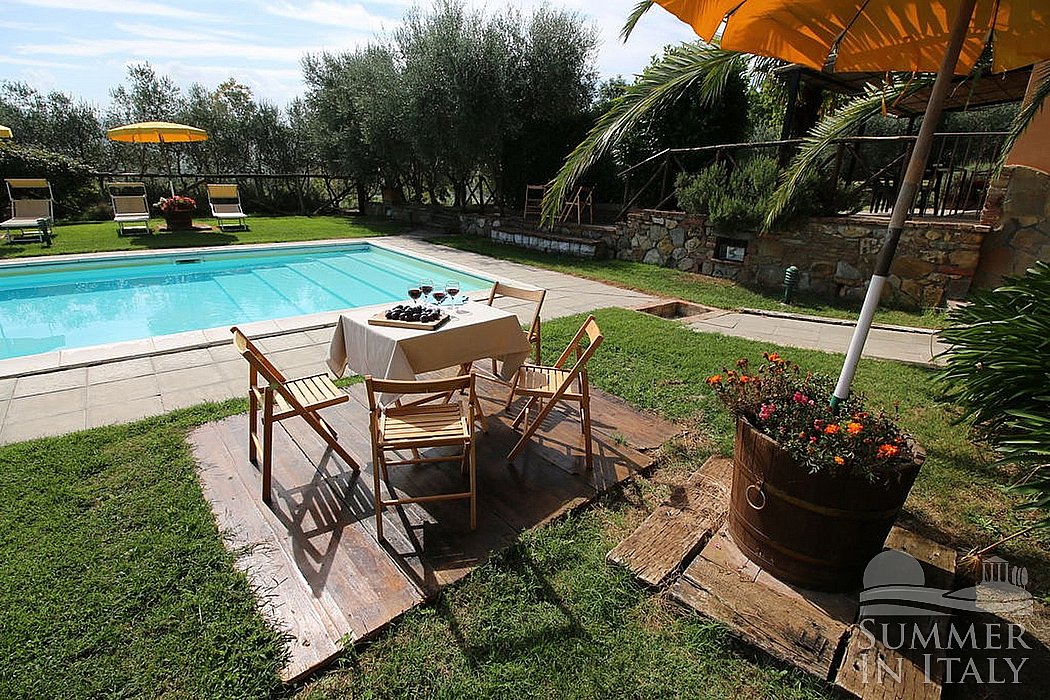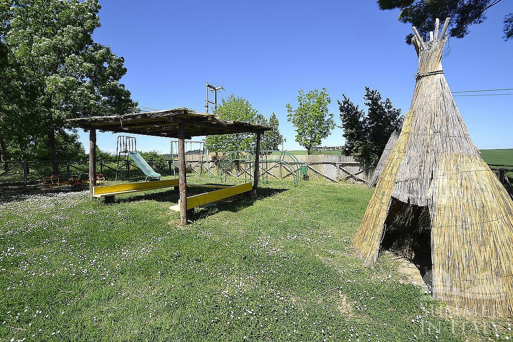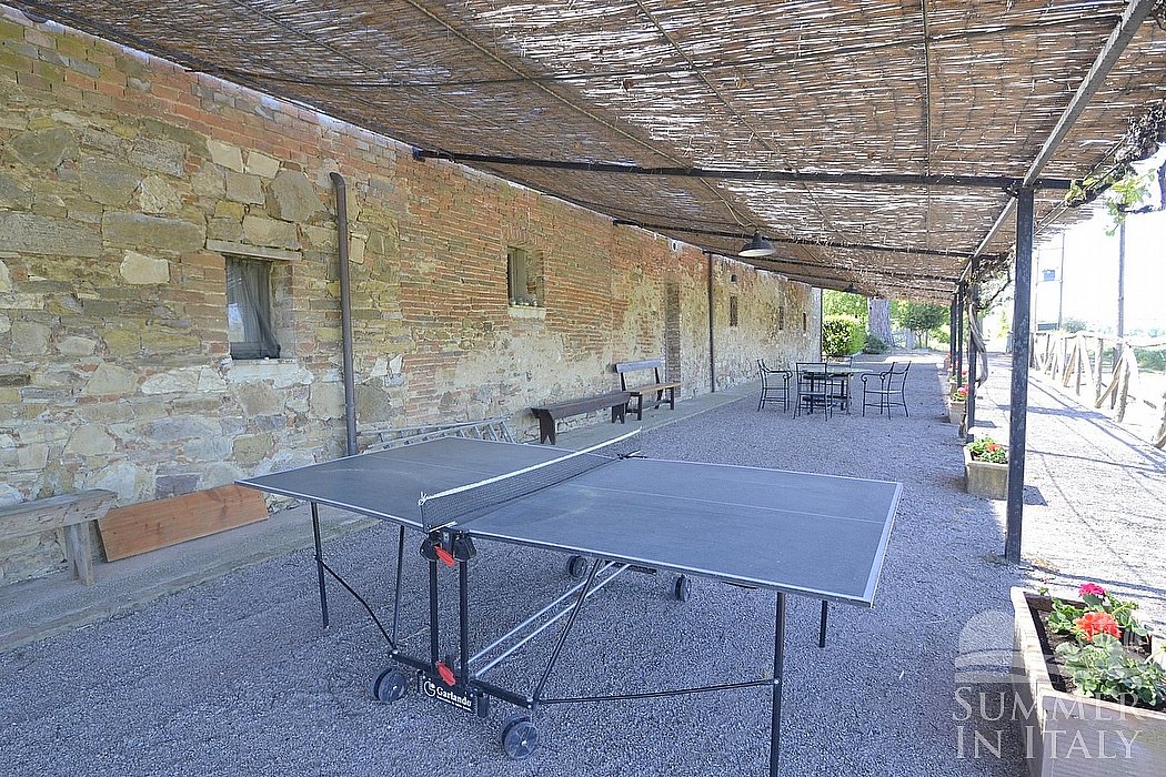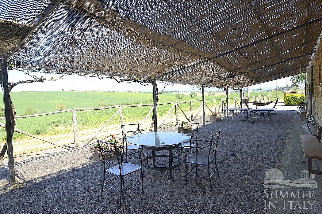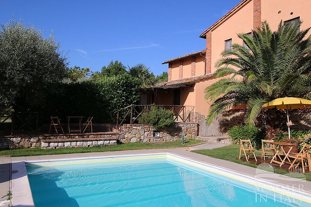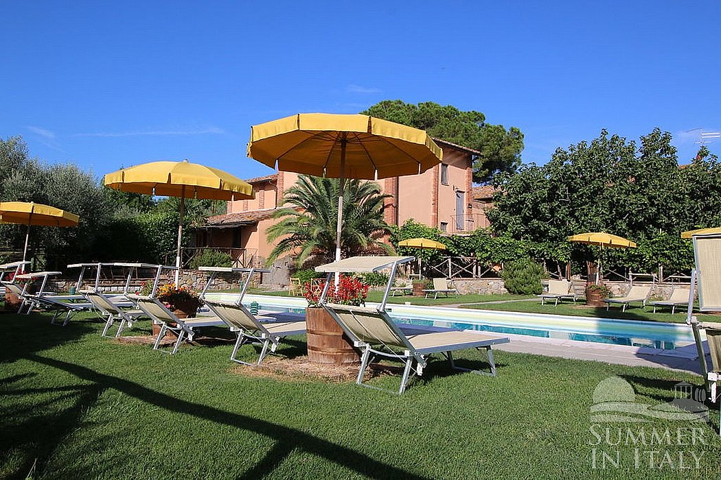 The swimming pool is 6 meters (20 feet) large by 16 meters (52 feet) long, from 1.20 meter (4 feet) to 1.50 meters (5 feet) deep. The area is equipped with tables, chairs, sun umbrellas, sun loungers and an external shower. From the swimming pool you will enjoy a broad view of the valley, of Casal di Pari and of the Amiata Mount at a distance. You will share the pool with the other guests staying at the complex, and there will be an area reserved for your exclusive use. The swimming pool is open from the beginning of May until the beginning of October.