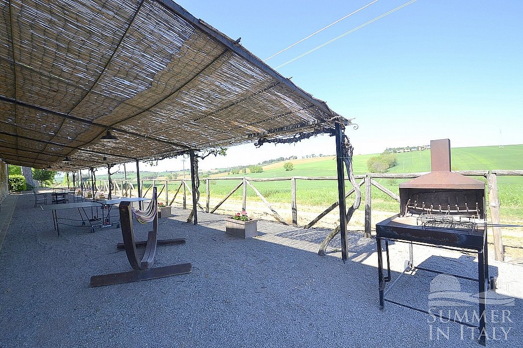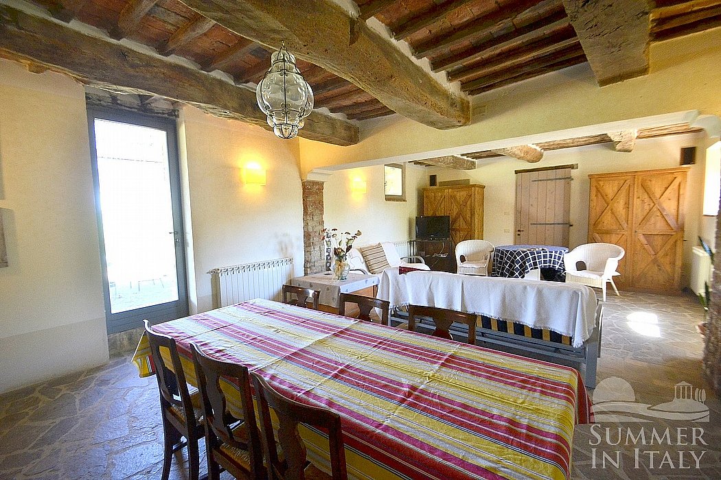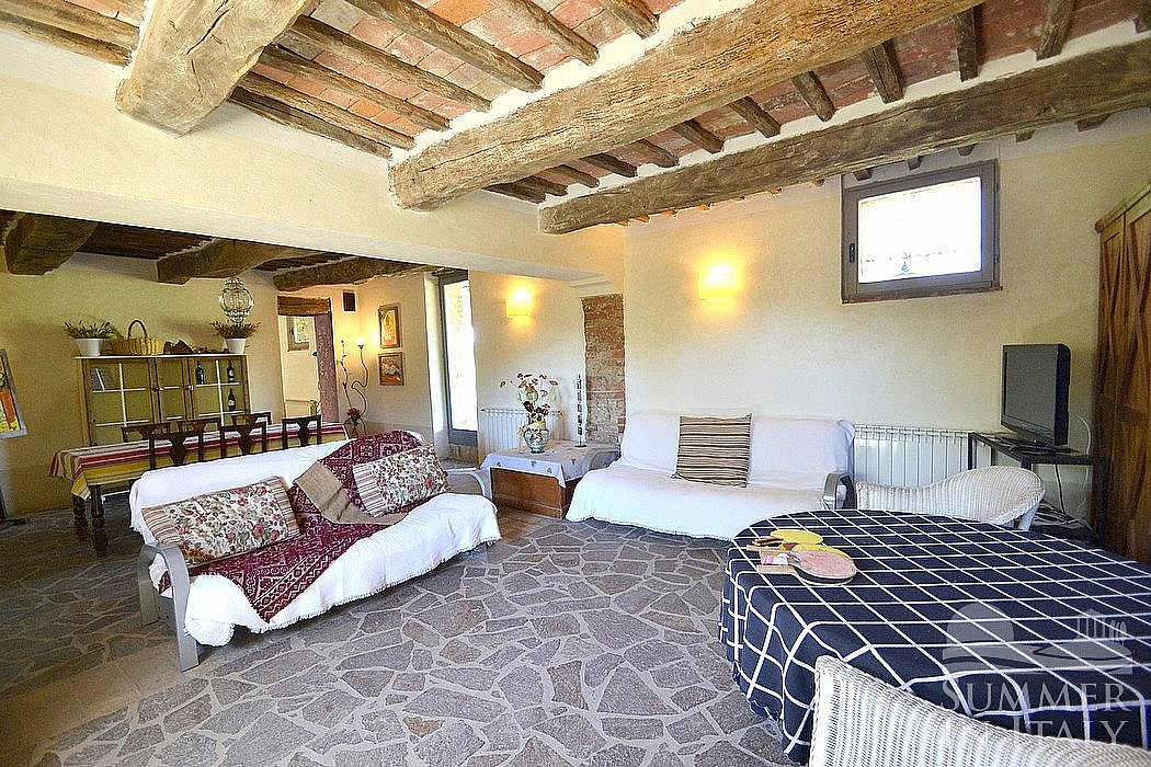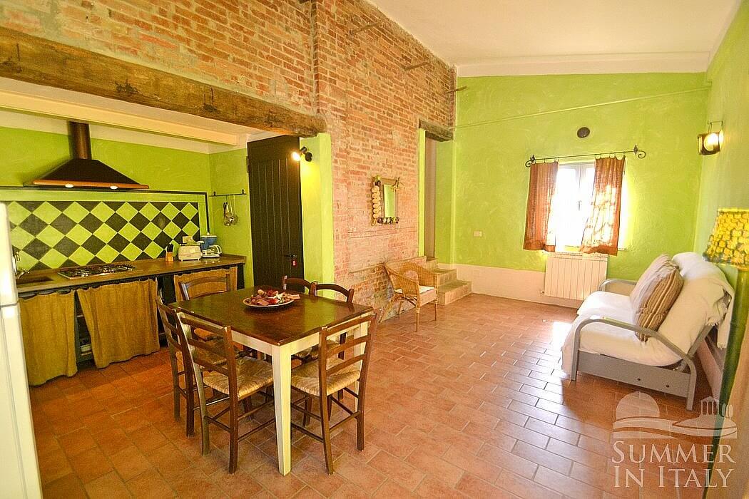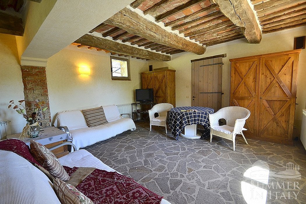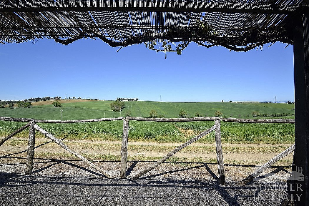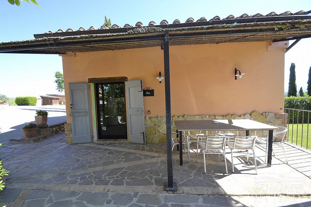The swimming pool is 6 meters (20 feet) large by 16 meters (52 feet) long, from 1.20 meter (4 feet) to 1.50 meters (5 feet) deep. The area is equipped with tables, chairs, sun umbrellas, sun loungers and an external shower. From the swimming pool you will enjoy a broad view of the valley, of Casal di Pari and of the Amiata Mount at a distance. You will share the pool with the other guests staying at the complex, and there will be an area reserved for your exclusive use. The swimming pool is open from the beginning of May until the beginning of October.