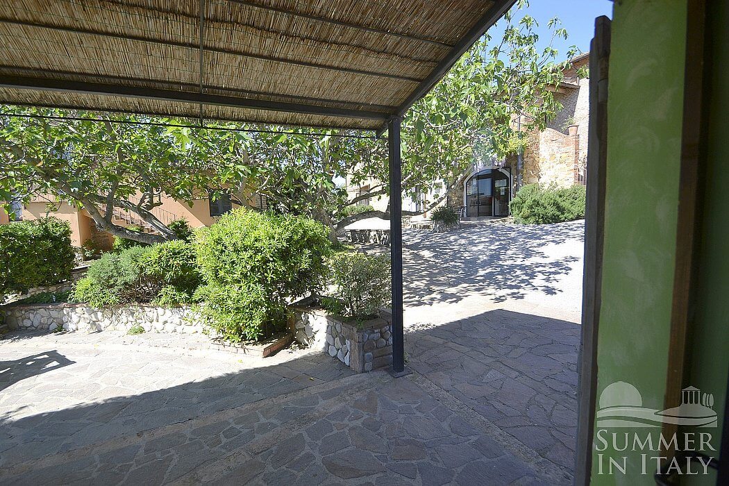 The patio is 300 square meters (3230 square feet) large. It is partly shaded by a pergola with a bamboo roof. It is equipped with tables, chairs and an hammock. In the patio you will be able to have fun with a ping pong table. Here you will also find a barbecue. From the patio you will enjoy a charming view of the greenery and of the hills. You will share the patio with the other guests staying at the complex.
