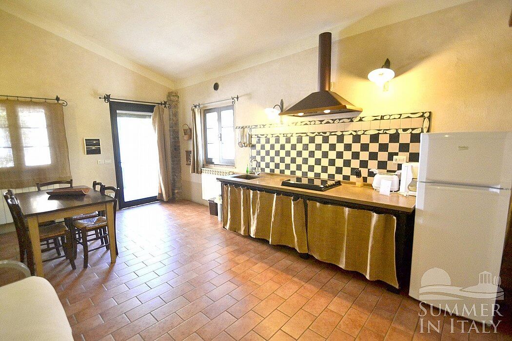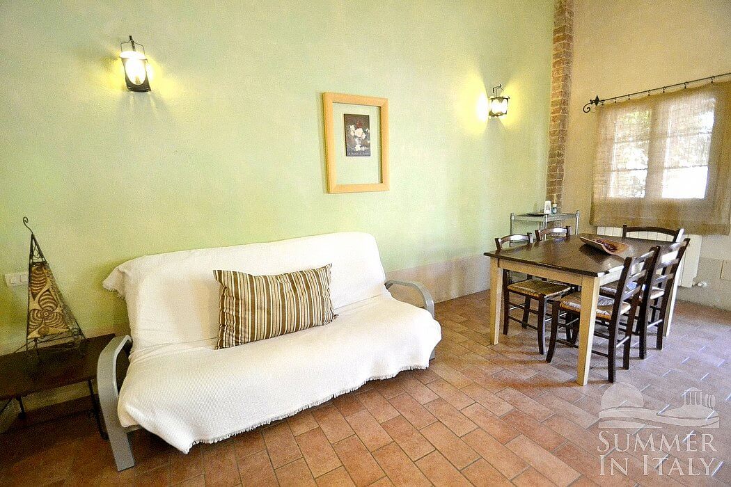 The swimming pool is 6 meters (20 feet) large by 16 meters (52 feet) long, from 1.20 meter (4 feet) to 1.50 meters (5 feet) deep. The area is equipped with tables, chairs, sun umbrellas, sun loungers and an external shower. From the swimming pool you will enjoy a broad view of the valley, of Casal di Pari and of the Amiata Mount at a distance. You will share the pool with the other guests staying at the complex, and there will be an area reserved for your exclusive use. The swimming pool is open from the beginning of May until the beginning of October.