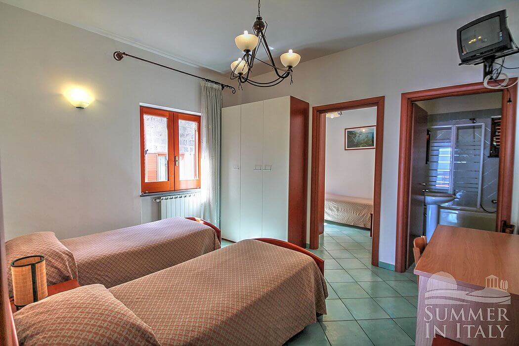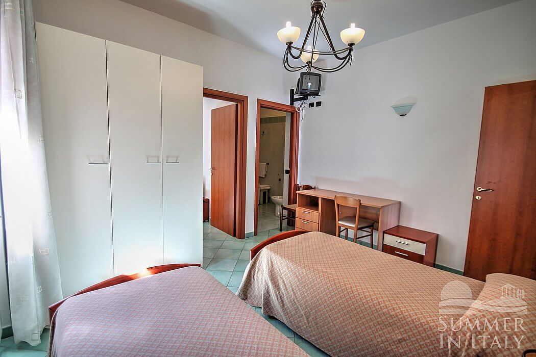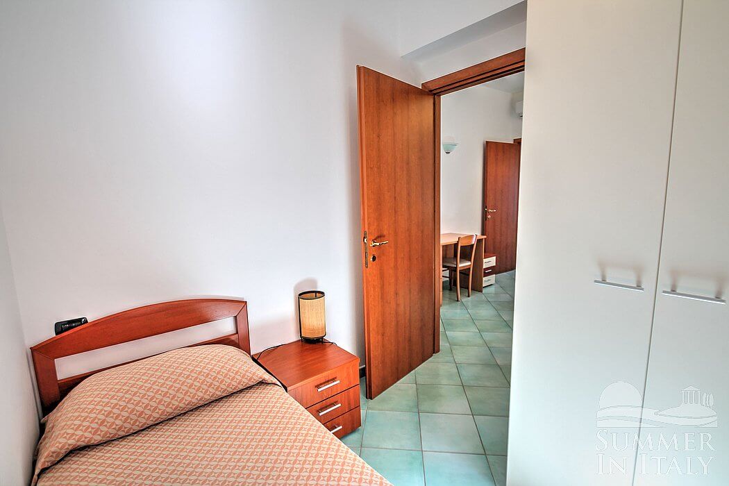 You will be able to enter the second bedroom from the corridor. It has two twin beds (80 cm/32 inches), that can be pushed together into a matrimonial bed if requested (please contact our staff in advance to make arrangements). The room has a window. The bedroom is equipped with an air conditioning/heating unit.