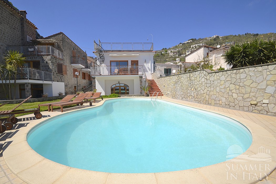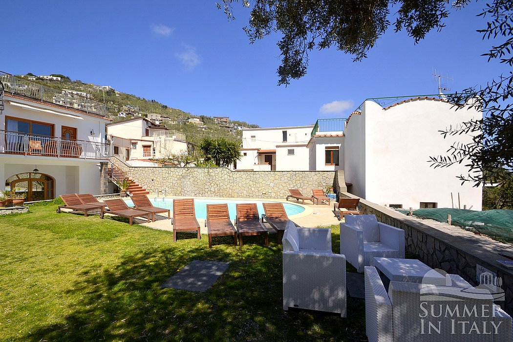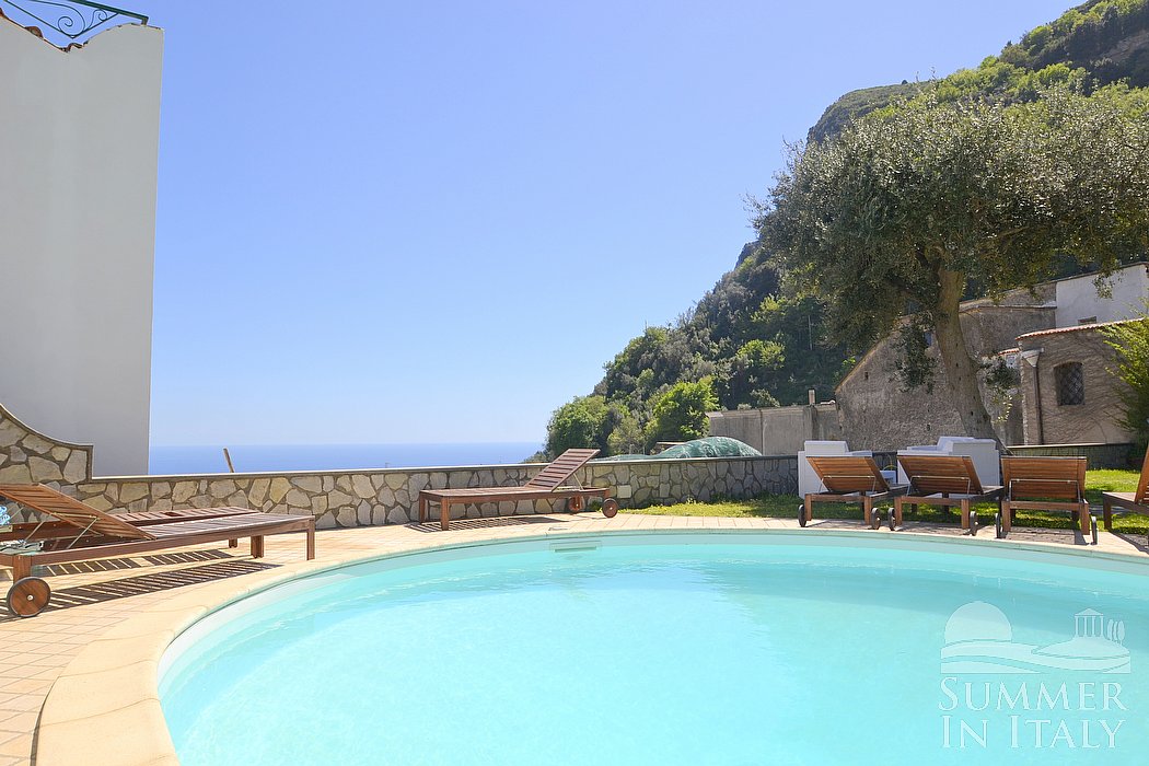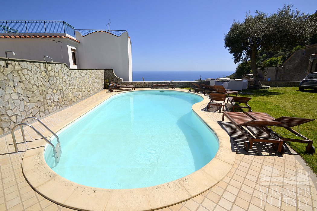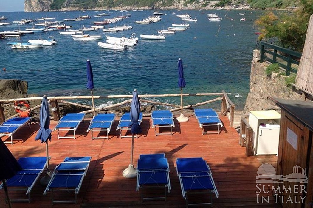 The swimming pool is 4 meters (13 feet) large by 11 meters (36 feet) long, from 1.20 meter (4 feet) to 2.3 meters (7.5 feet) deep. The area is equipped with chairs and sun loungers. From the swimming pool you will have an enchanting view of the sea and of the bay of Nerano. You will share the pool with the other guests staying at the complex. The swimming pool is open all year round, although it is not heated.