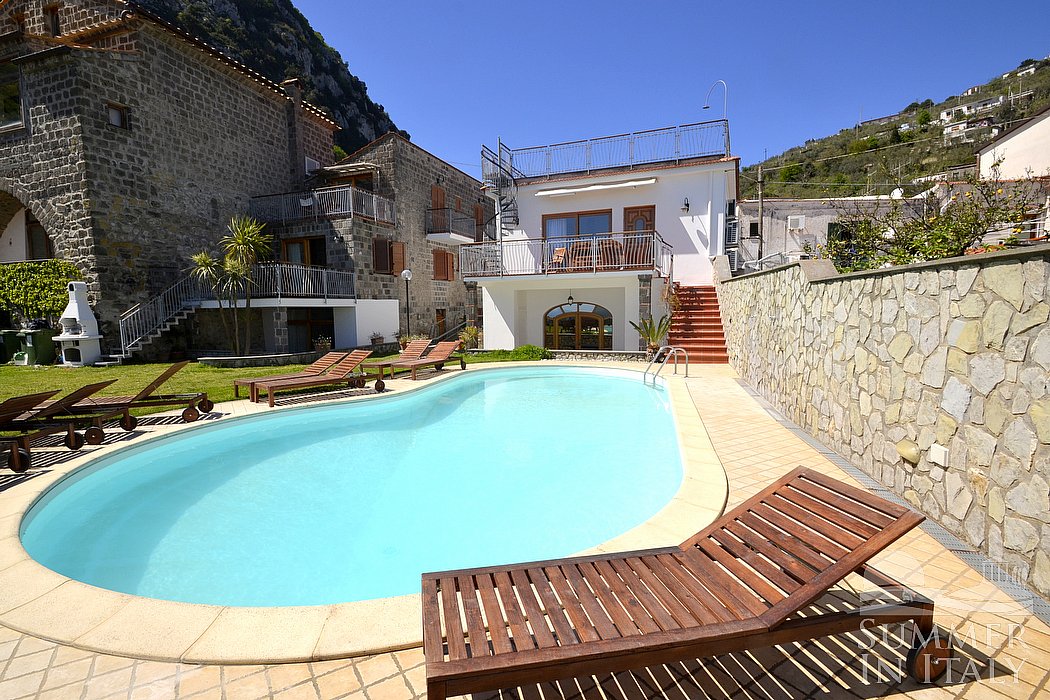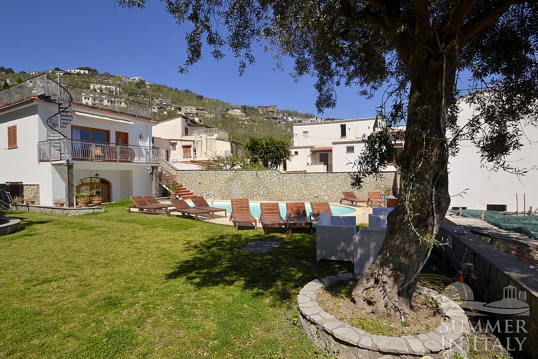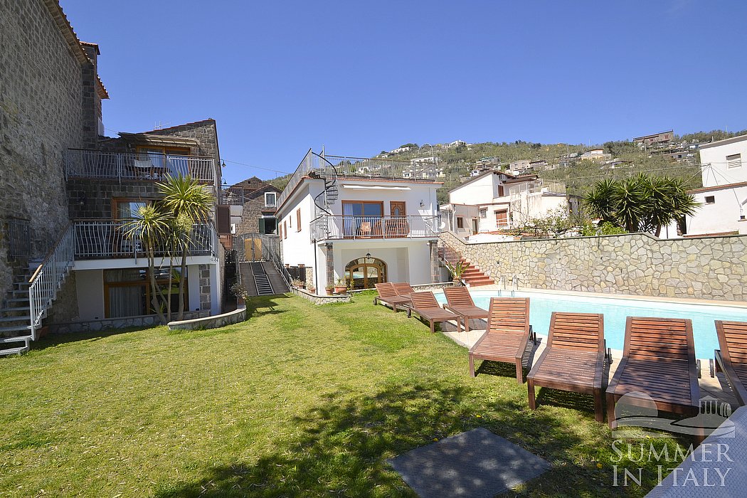 Residence Serenata is in the historical part of the old village of Nerano. The long history of the two buildings that have been combined together is testified by the antique grey stonewall, carefully restored by the builders. The side of Residence Serenata’s garden borders the wall that encloses the garden of The Church of San Salvatore. There is also an antique tower. Both buildings go back to the 1400s. From the garden you can admire the old bell tower and the pergola made up of grapes in the church’s vegetable garden.