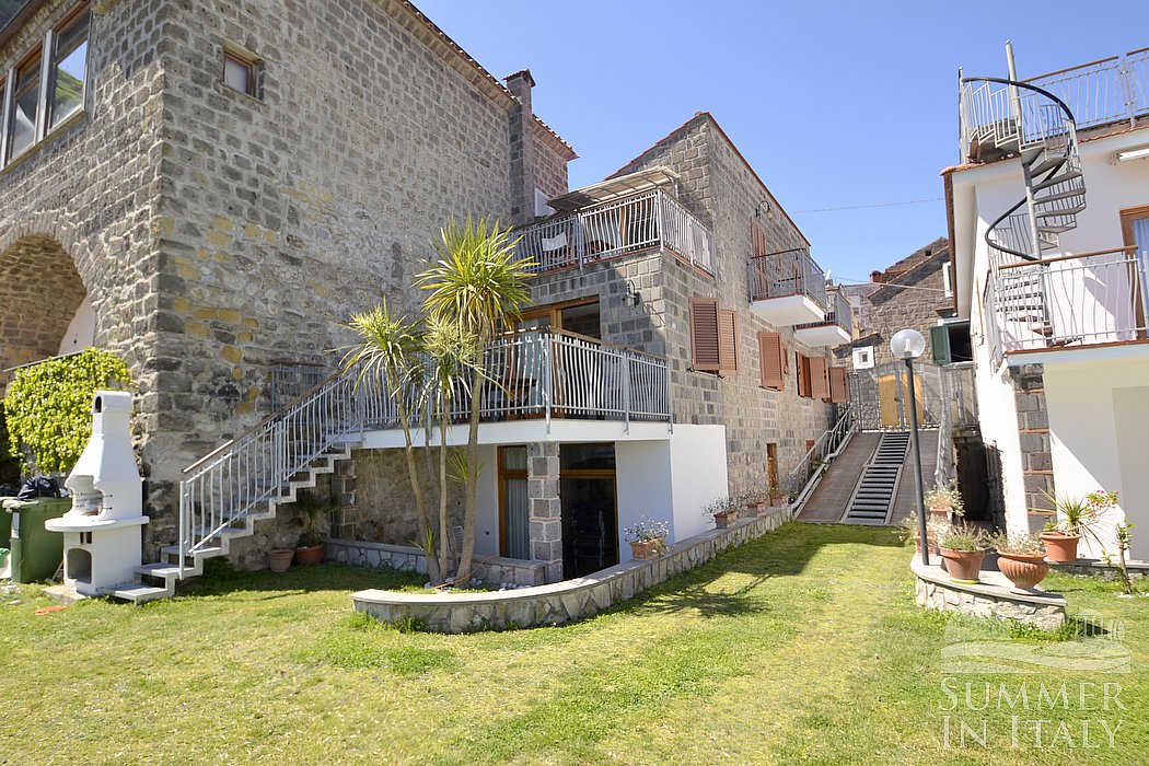 The garden is 300 square meters (3230 square feet) large. It is equipped with a table, chairs and sun loungers. Here you will also find a brickwork barbecue. From the garden you will enjoy a fascinating view of the sea and of the bay of Nerano. You will share the garden with the other guests staying at the complex.