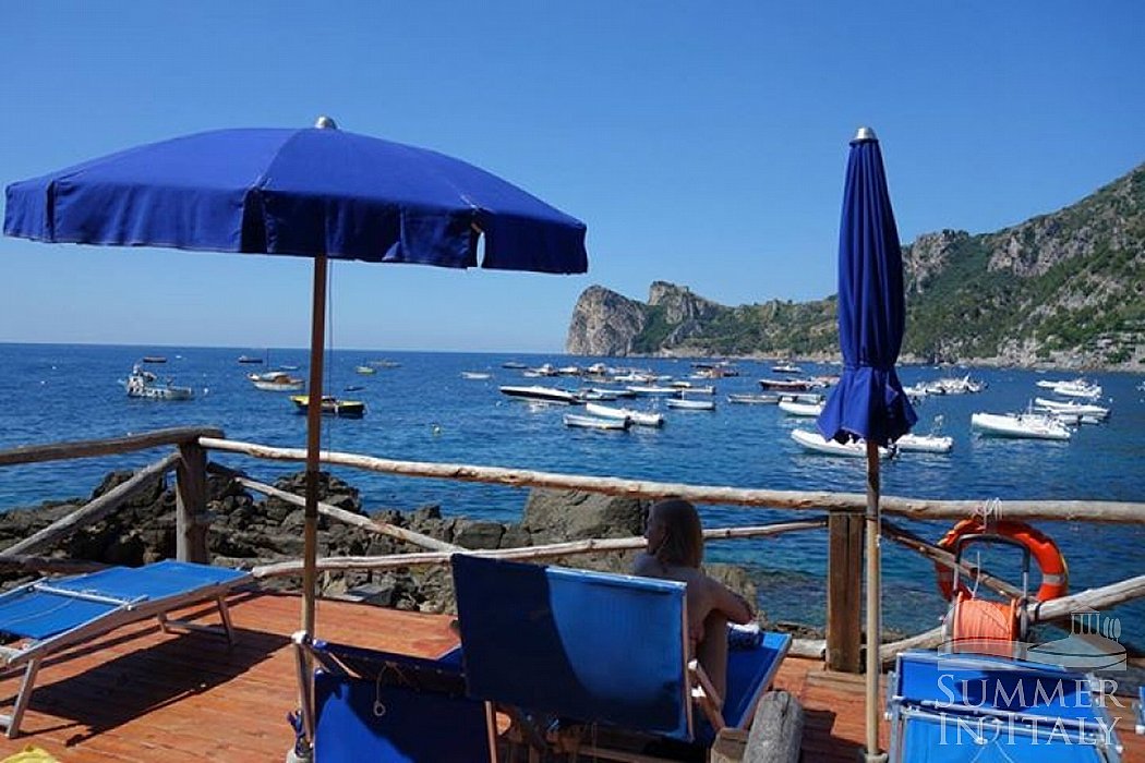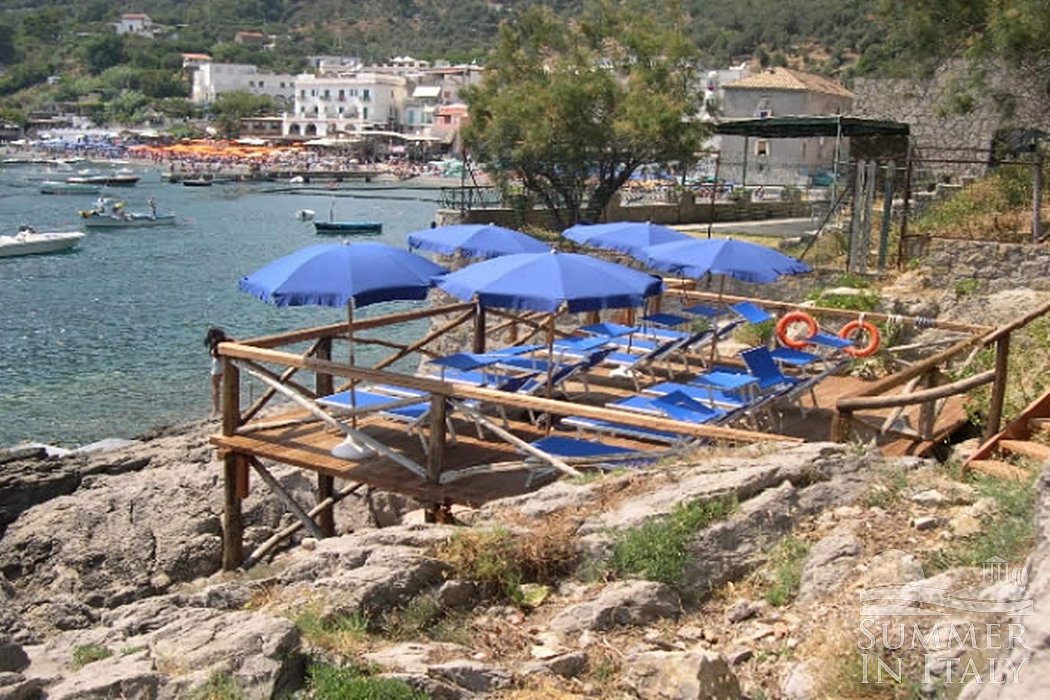 You will be at 1.5 km (0.6 miles) from the fascinating beach of Marina del Cantone, where you will find a platform equipped with sun loungers and umbrellas. The platform is shared among the guests of the residence. At the beach you will also be able to take boat trips and practice water ski.