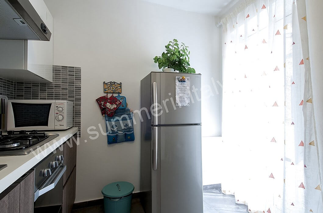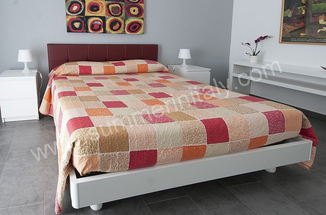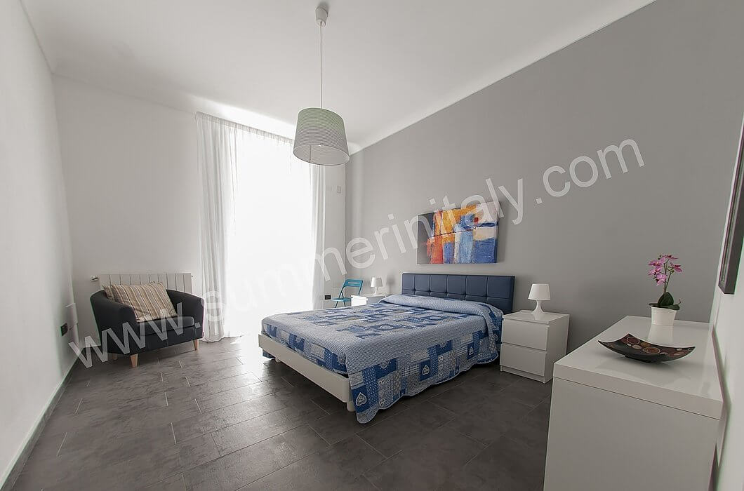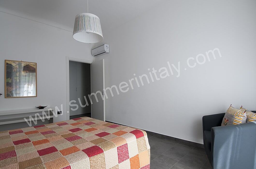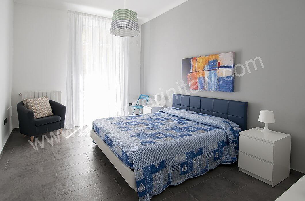 You will be able to enter the first bedroom from the through a corridor. The bedroom has a matrimonial bed (160 cm/62 inches, wider than a queen-size bed). From the bedroom you will be able to enter the small balcony with a view of the nearest building through a French door. The bedroom is equipped with an air conditioning/heating unit.