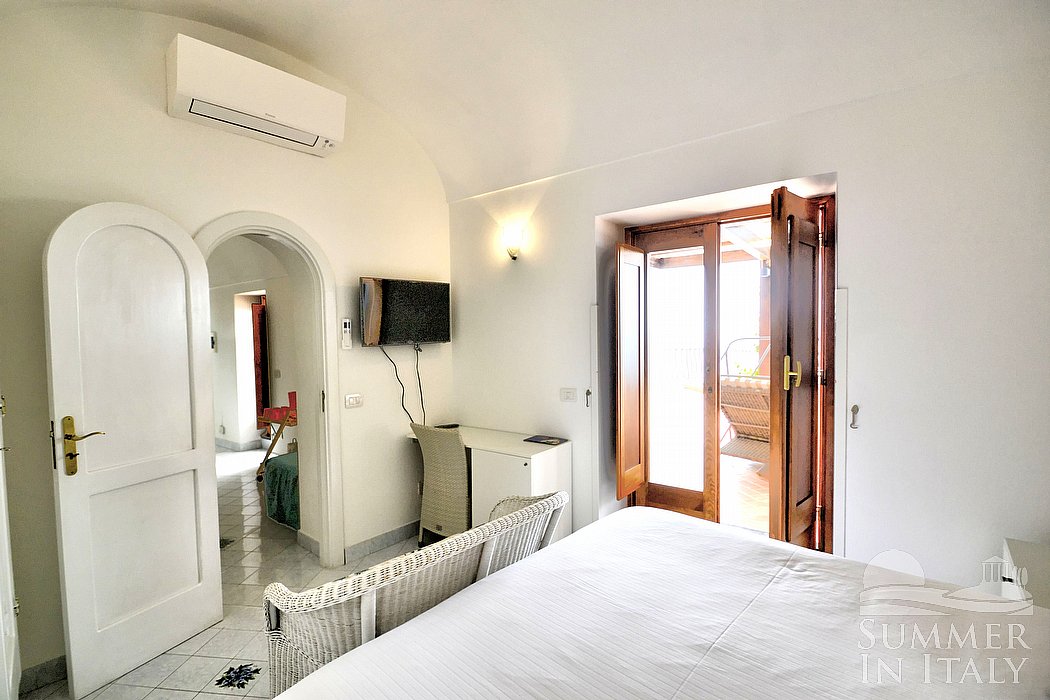 Suite Antimo is a romantic and welcoming independent house situated in a quiet location, a few minutes from the town center. It sleeps two people. From Suite Antimo you will enjoy a breathtaking view of the sea and of the coast, from Positano to the island of Capri. Suite Antimo is 22 square meters (237 square feet). It features a spacious private terrace with a view of the sea, air conditioning (please read description below to check in which rooms the units are installed), winter heating and WI-FI Internet access.