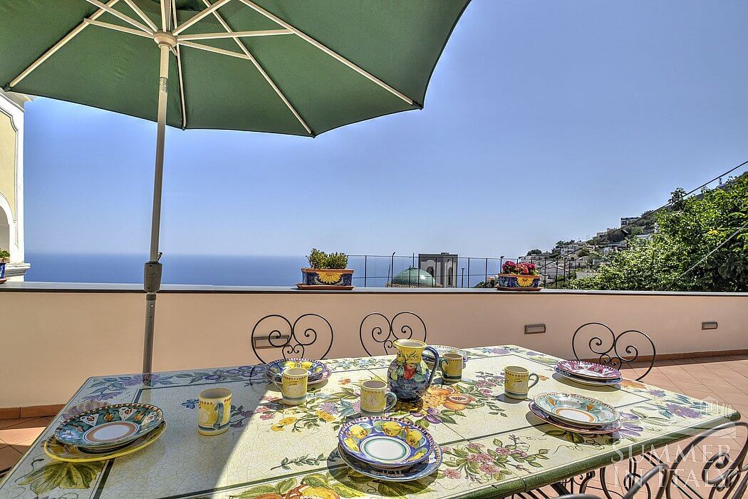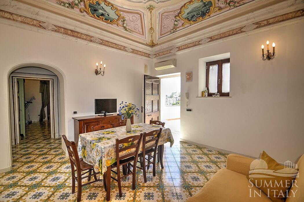 Villa Antica is a splendid two-story historical villa rich in elegant eighteenth-century decorations. It sleeps six people. From Villa Antica you will enjoy a spellbinding view of the sea, of Praiano and the coast of Amalfi. Villa Antica is 80 square meters (860 square feet). It features a private swimming pool, a nice private terrace with a view of the sea, air conditioning (please read description below to check in which rooms the units are installed), winter heating and WI-FI Internet access.