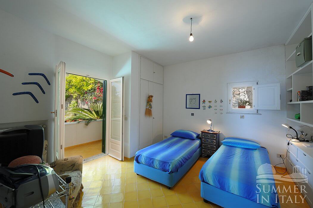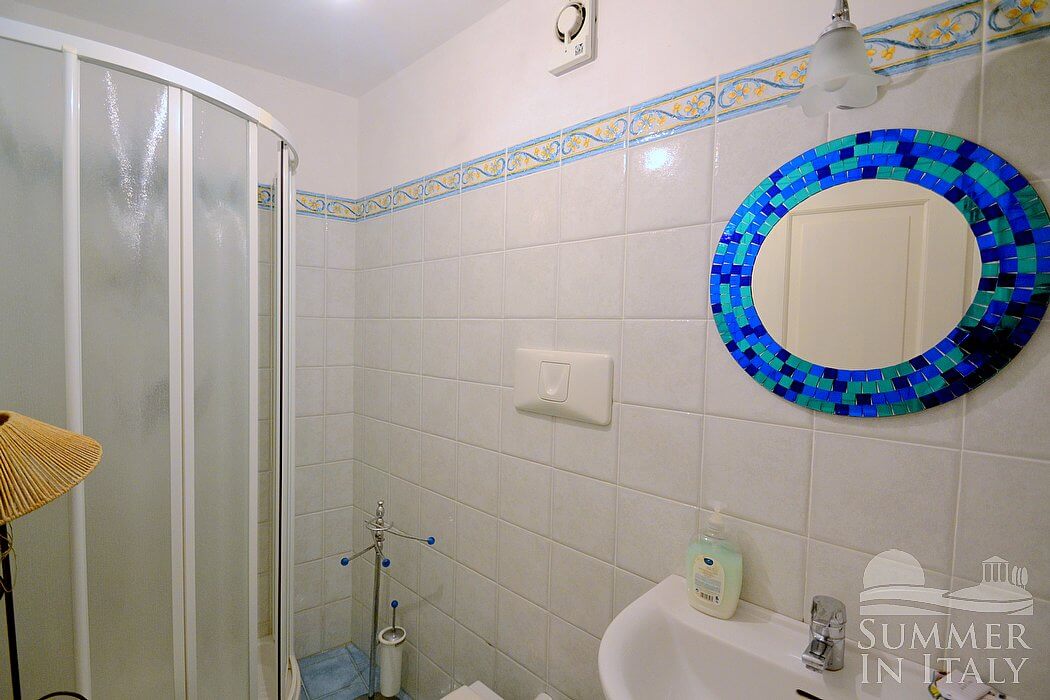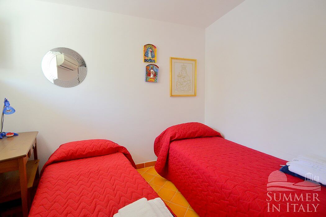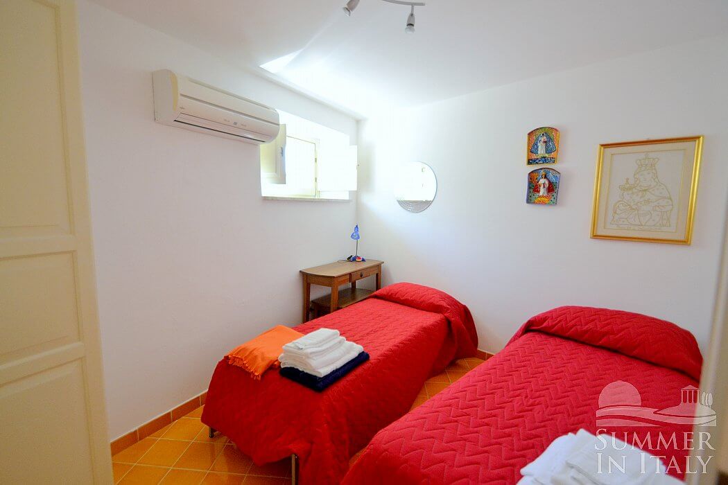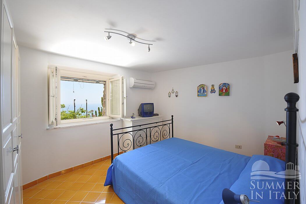 The first living room is paved with original majolica tiles. The furnishings are warm and welcoming. The furnishings include two sofas. In the living room you will also find a cooking area. The kitchenette is equipped with a four-burner gas cooker, an electric oven, a refrigerator with freezer, a microwave oven and an Italian-style coffee-maker. The dining table can accommodate four guests. In this room you will find a satellite television (local channels). From the living room you will be able to enter the terrace with a view of the sea and of the coastline through a French door. The room also has a window. It is equipped with an air conditioning/heating unit.