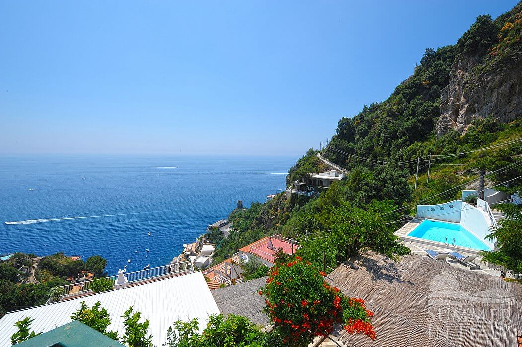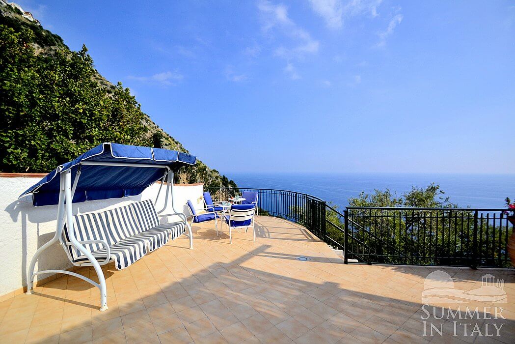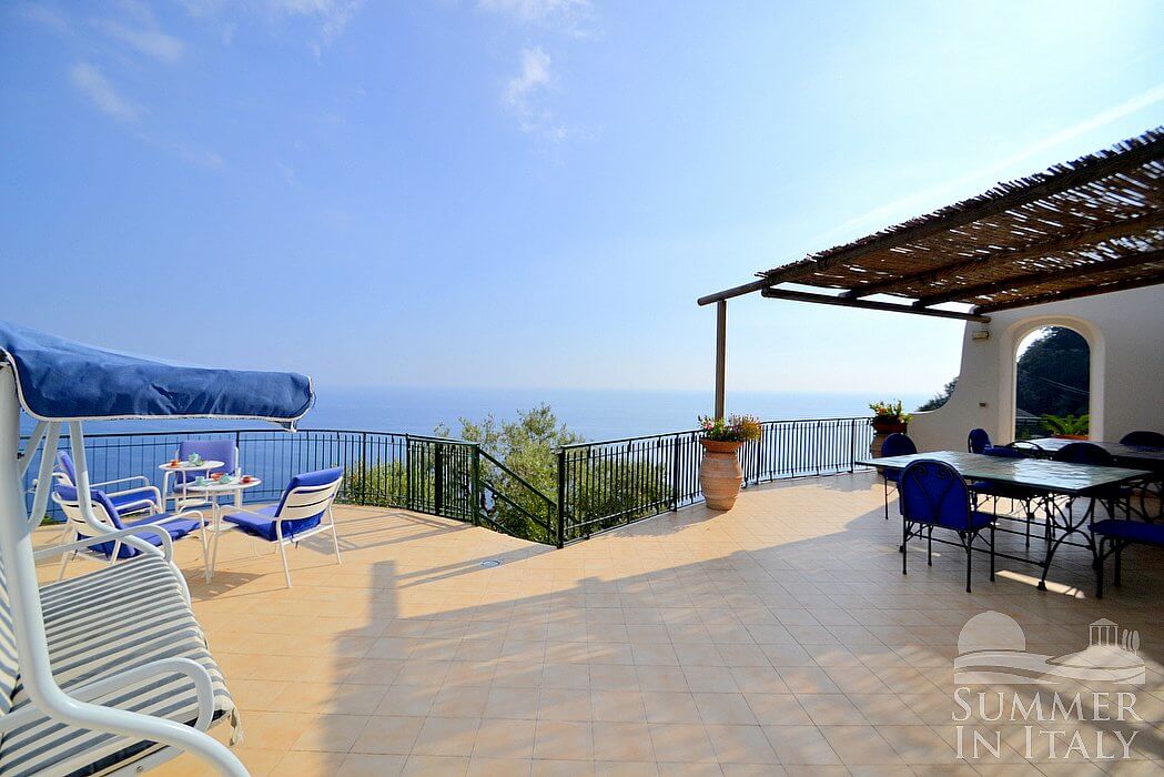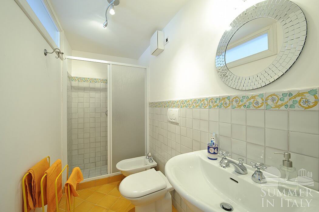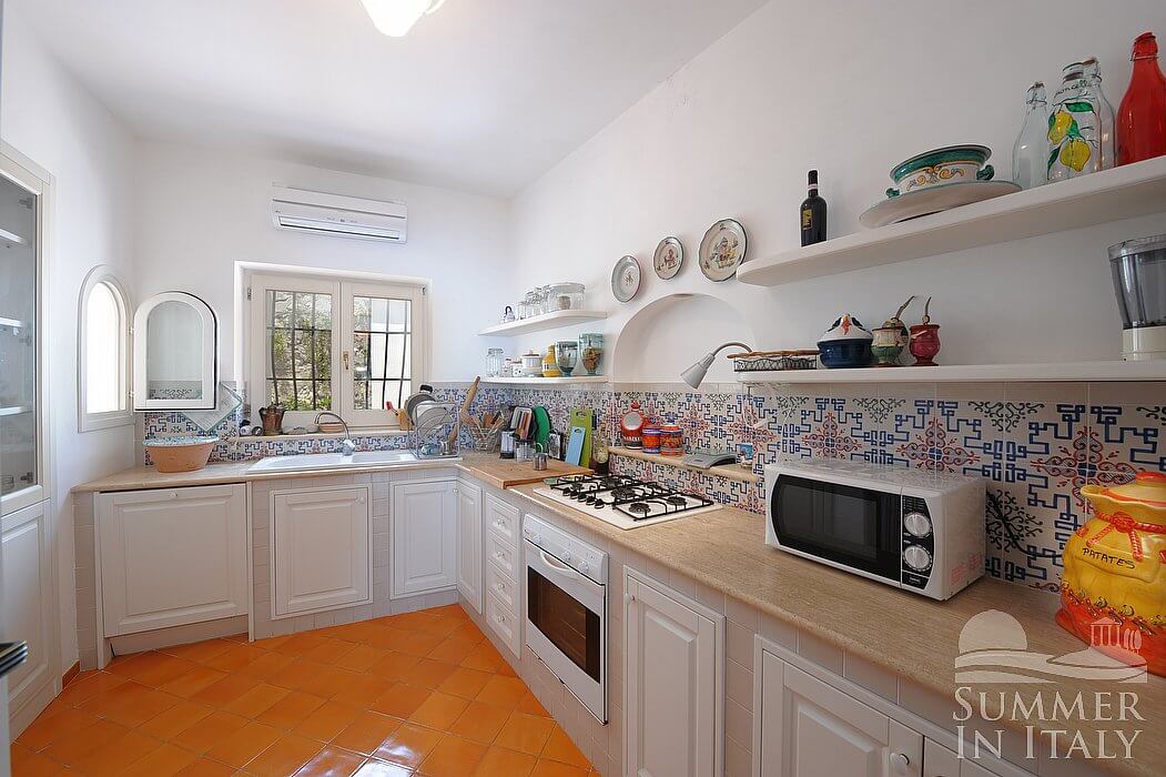 You will reach the swimming pool from the villa going down approximately 30 stairway steps. The pool is 7 meters (23 feet) large by 9 meters (30 feet) long. It has a whirlpool corner. The area is equipped with tables and sun loungers. From the swimming pool you will enjoy an incredible view of the sea and of the coastline. The pool is open from the beginning of April until the end of October.