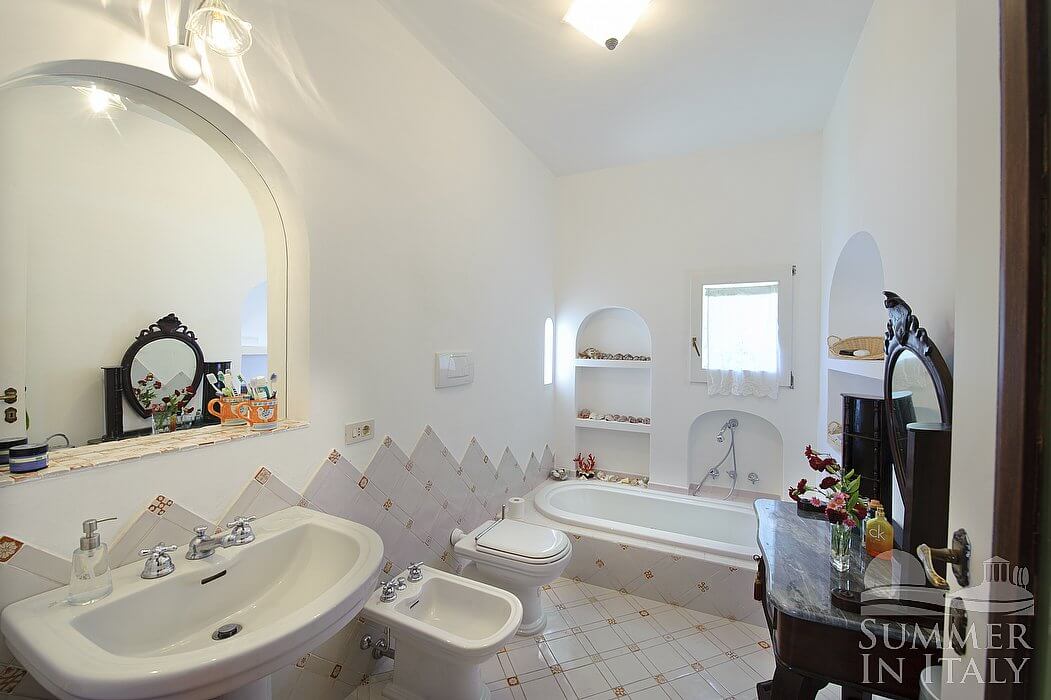 Villa Cala del Marò is a bright and cheerful three-story villa which faces the sun and the sea. It sleeps eight people. From Villa Cala del Marò you will enjoy a gorgeous view of the sea and of the coastline. Villa Cala del Marò is 180 square meters (1940 square feet). It features a private swimming pool, two wide private terraces with a view of the sea, a private patio, a private garden, air conditioning (please read description below to check in which rooms the units are installed), winter heating and WI-FI Internet access.
