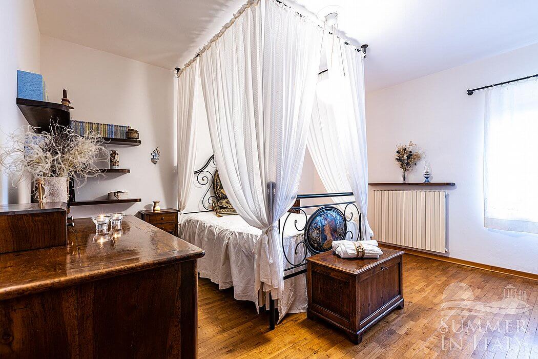 Villa Cimpoli is a characteristic and welcoming apartment that covers the entire top floor of a villa surrounded by meadows and by green hills. It sleeps six people. From Villa Cimpoli you will enjoy a spellbinding view of the greenery and of the hills. Villa Cimpoli is 90 square meters (970 square feet). It features a private swimming pool, a private garden, air conditioning (please read description below to check in which rooms the units are installed) and WI-FI Internet access.