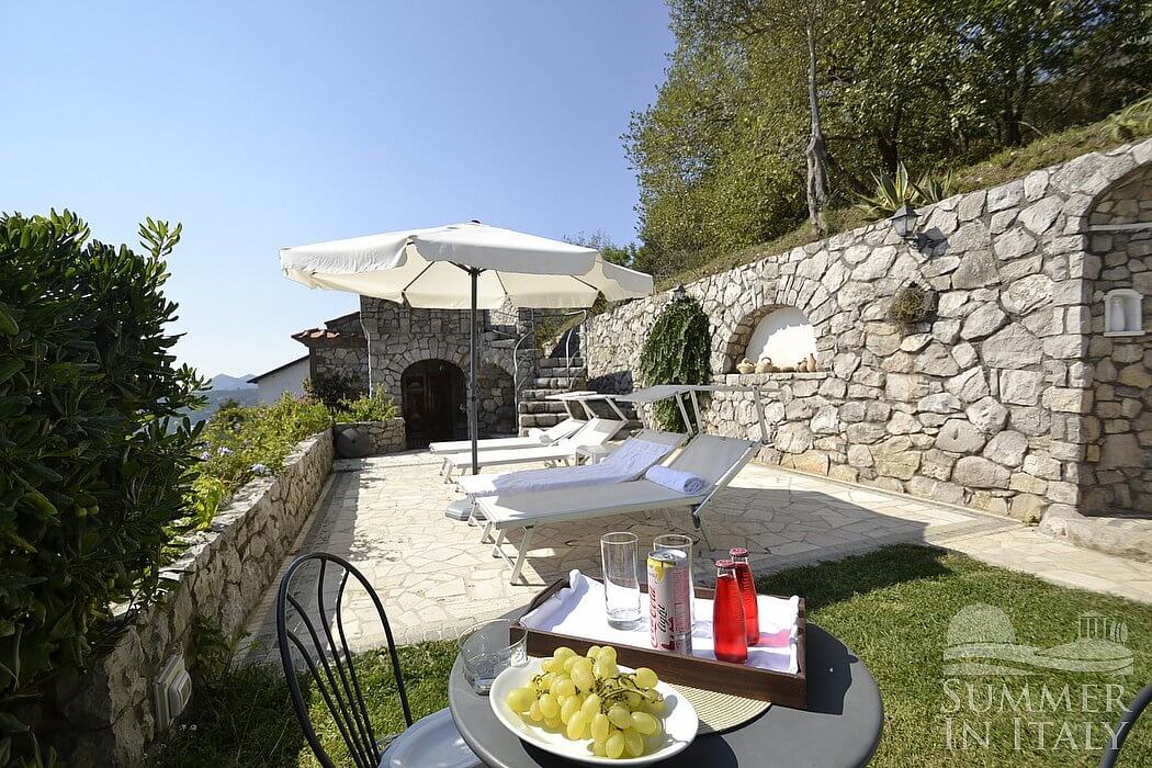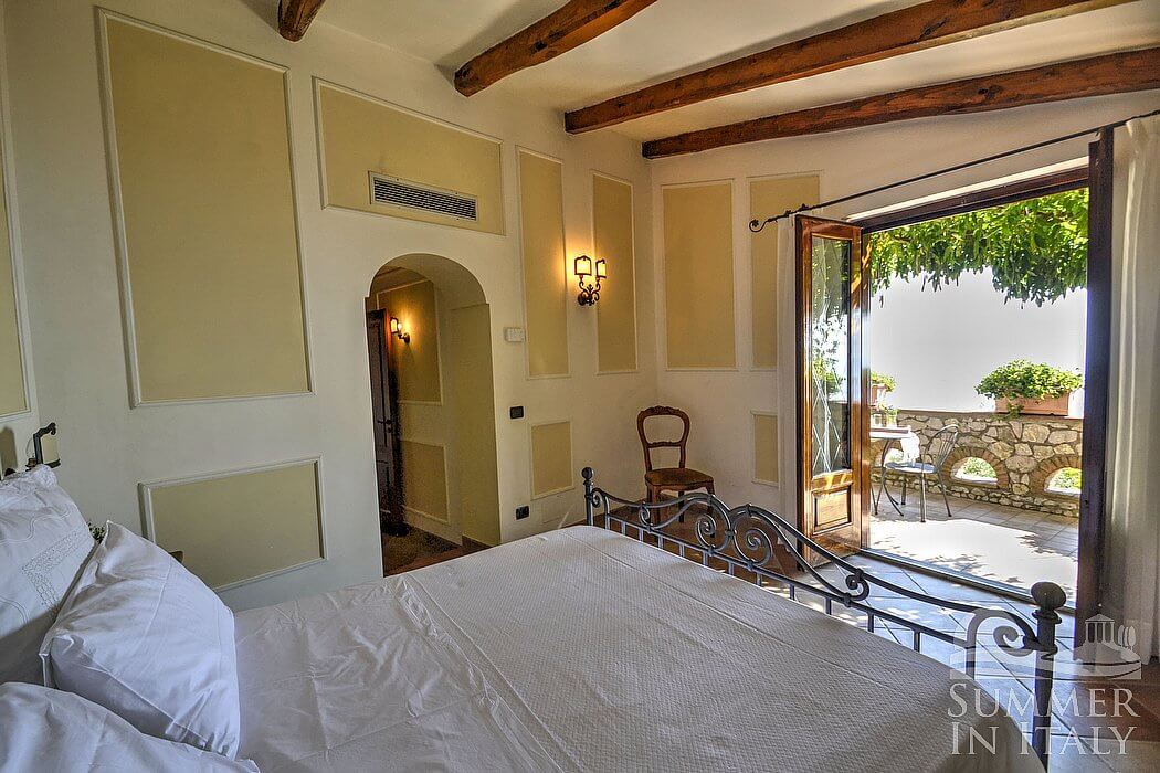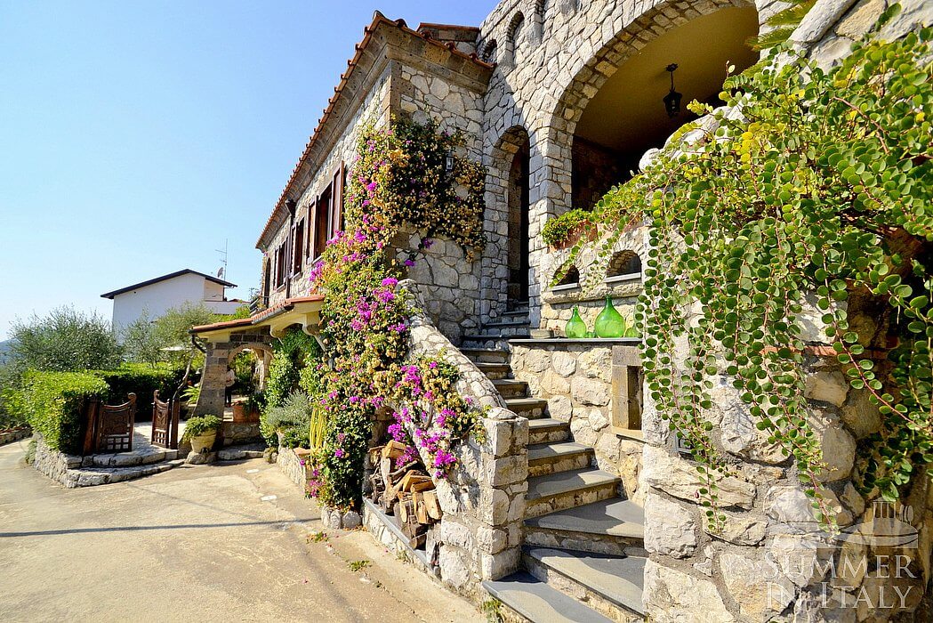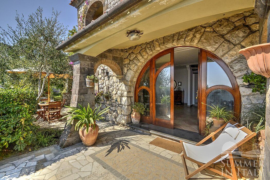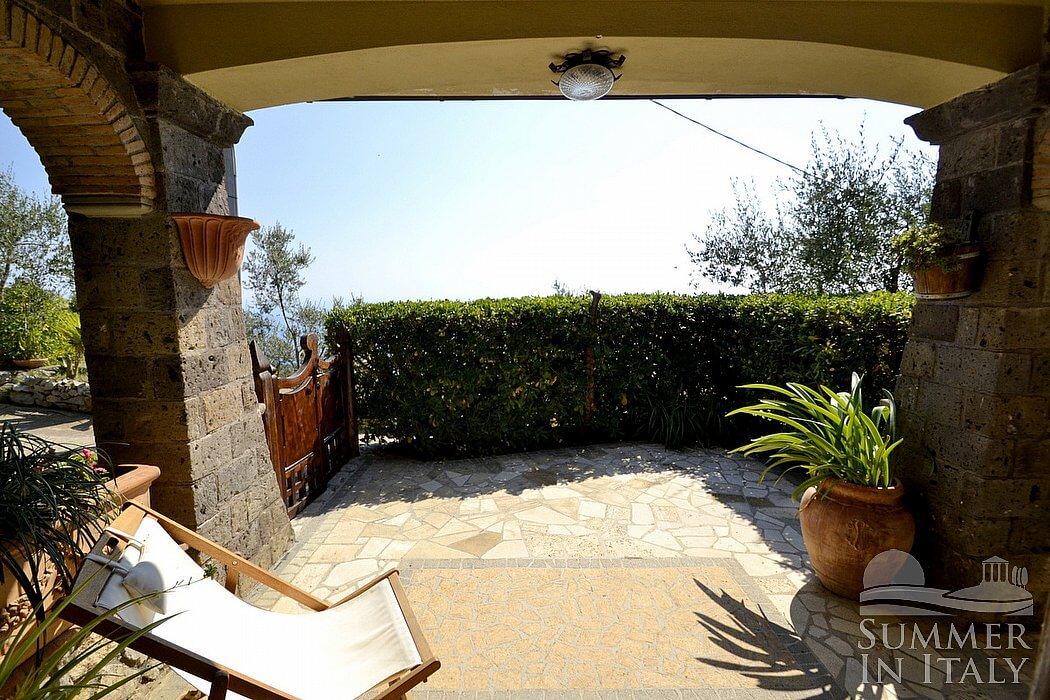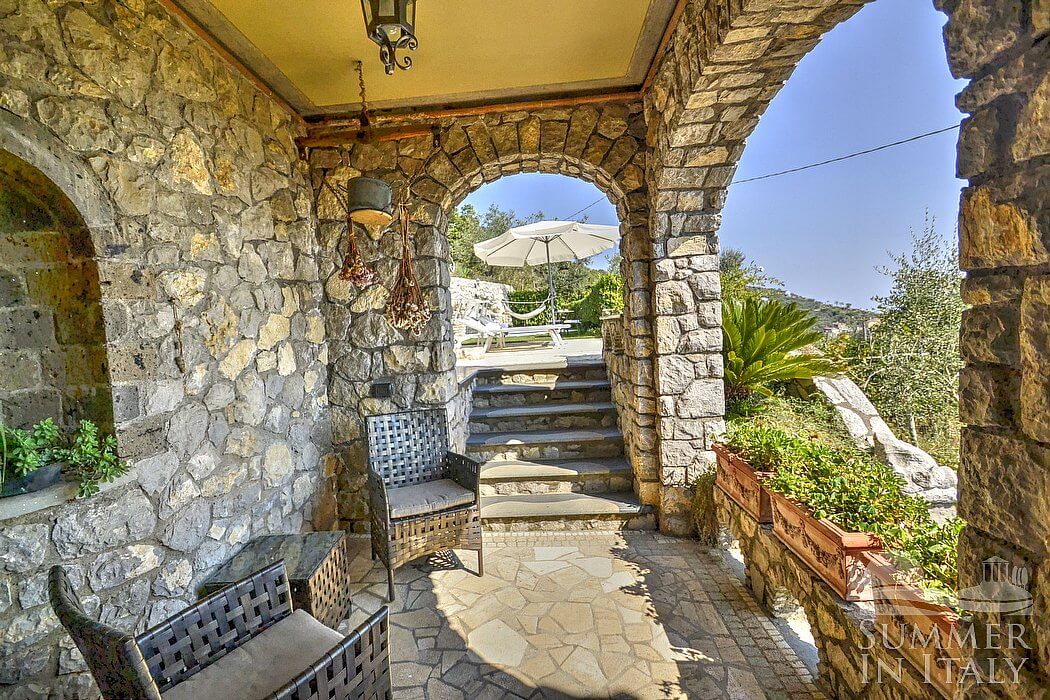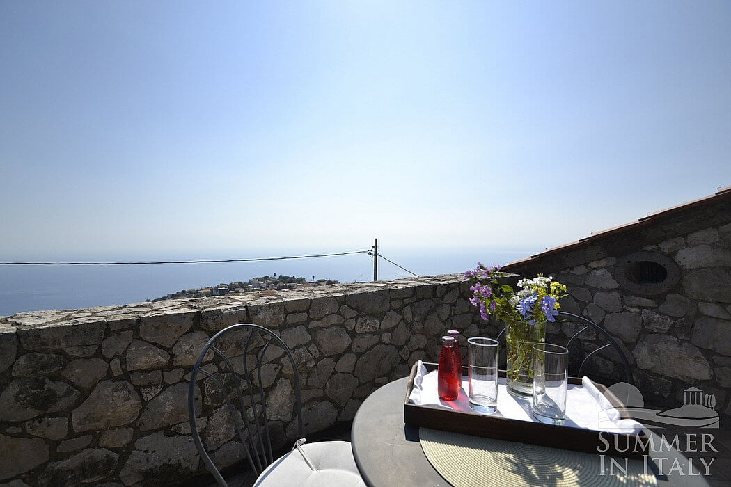 The terrace is 12 square meters (130 square feet) large. You will be able to enter it swimming pool area climbing 12 steps. It is equipped with a table and chairs. From the terrace you will enjoy a spectacular view of the sea.