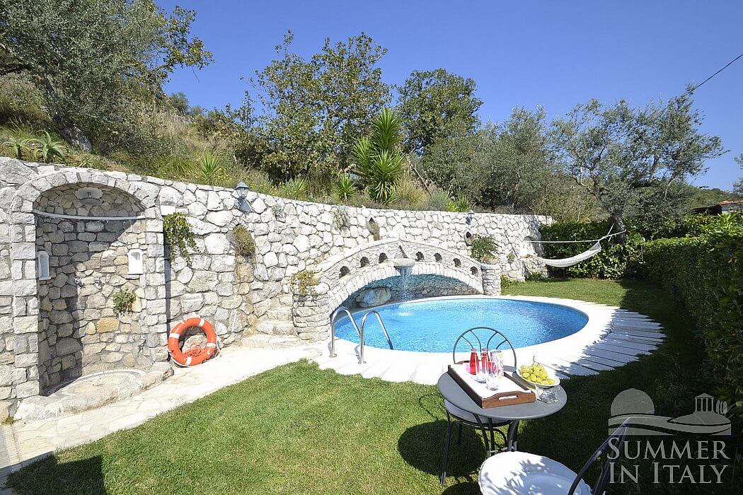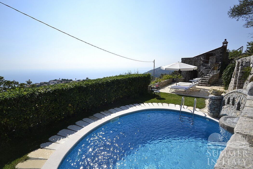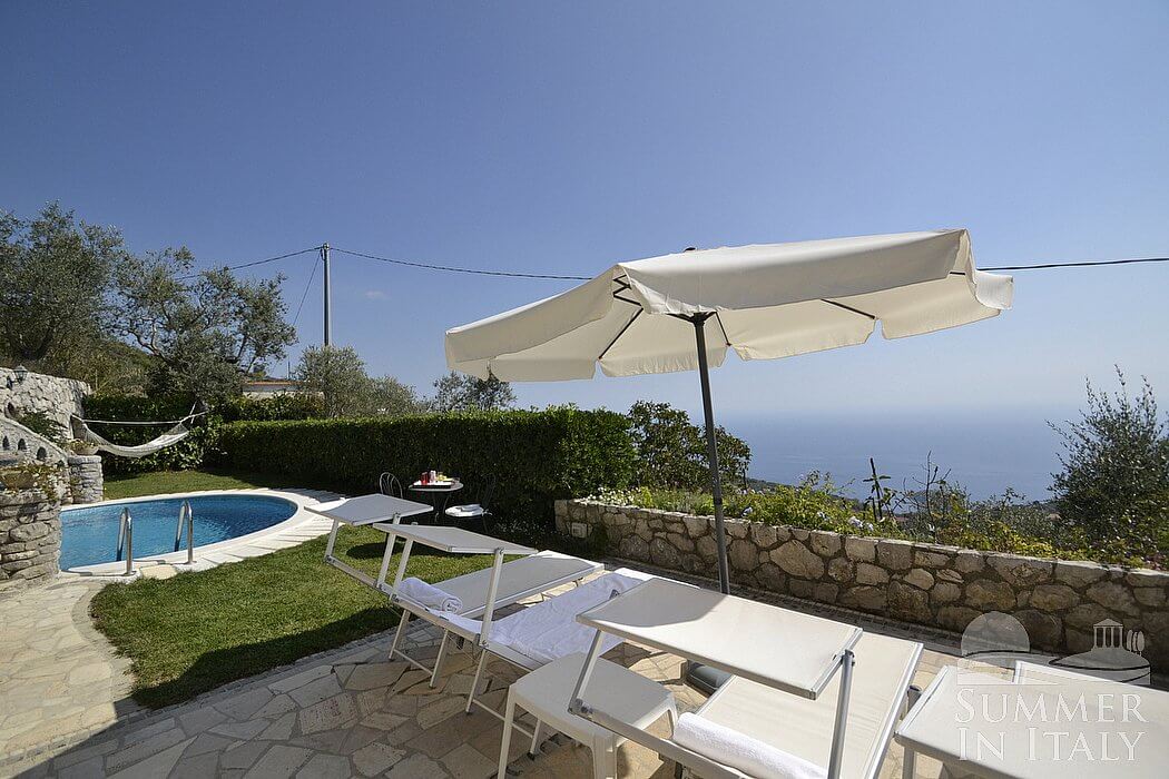 The swimming pool is 6 meters (20 feet) large by 4 meters (13 feet) long, 1.8 meters (5.9 feet) deep. The area is equipped with sun umbrellas, sun loungers and an external shower. From the swimming pool you will enjoy a splendid view of the sea and of the coastline. The pool is open from the beginning of April until the end of October.