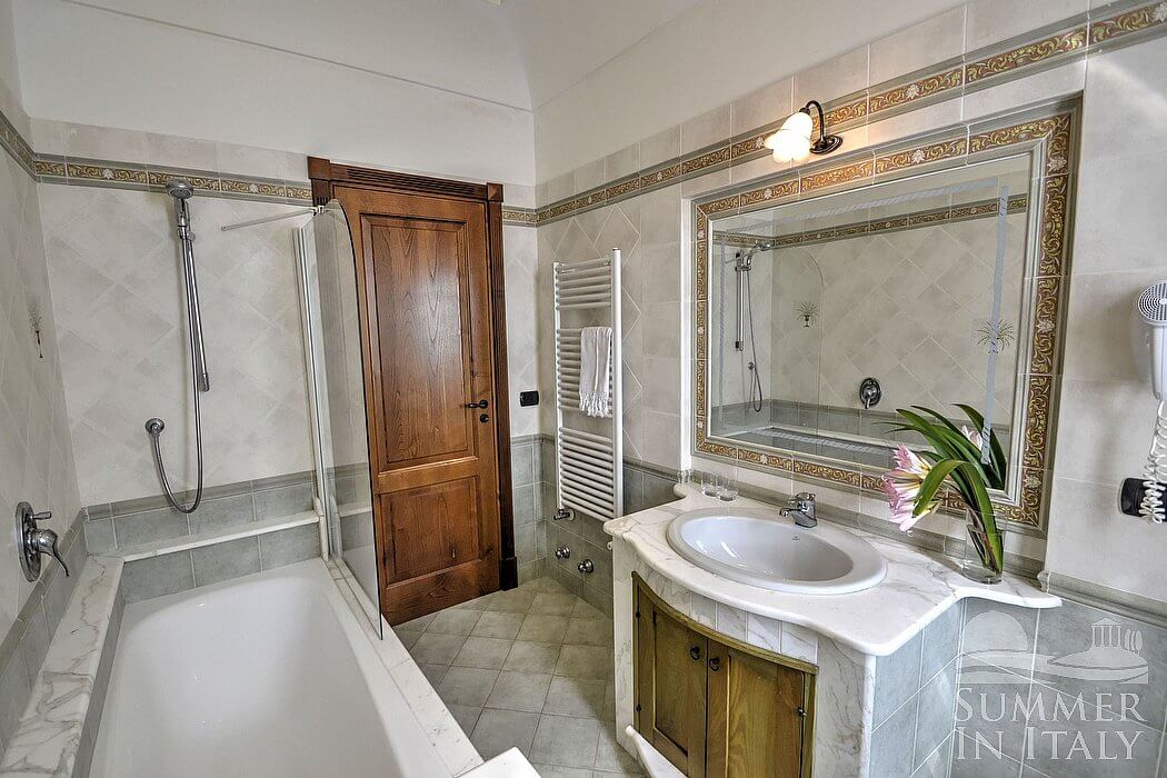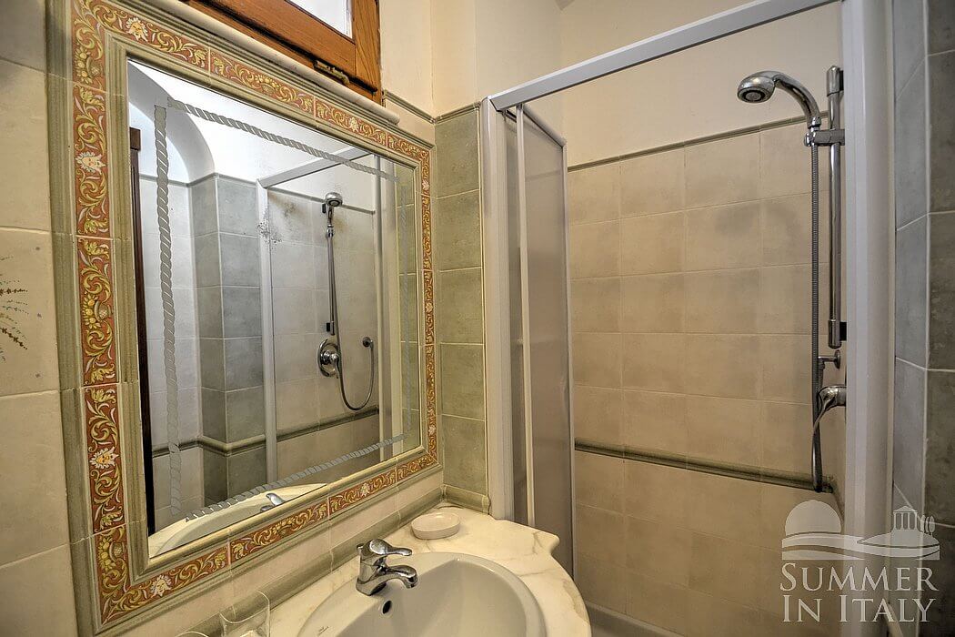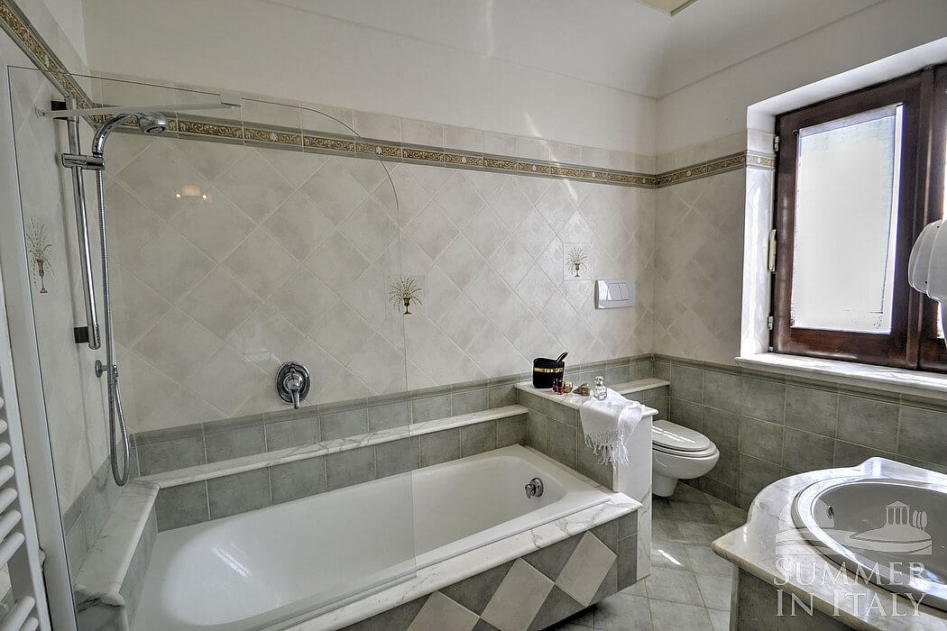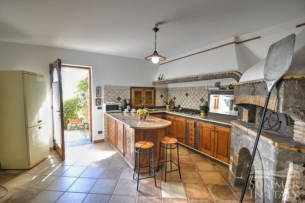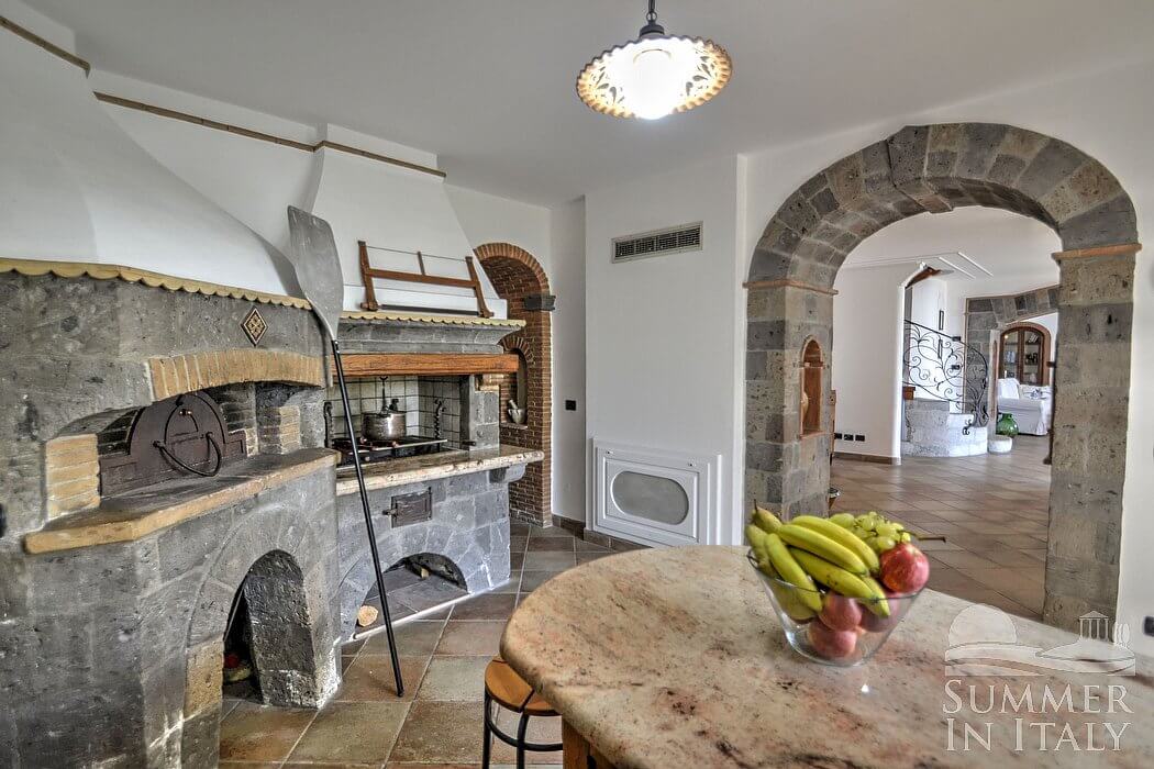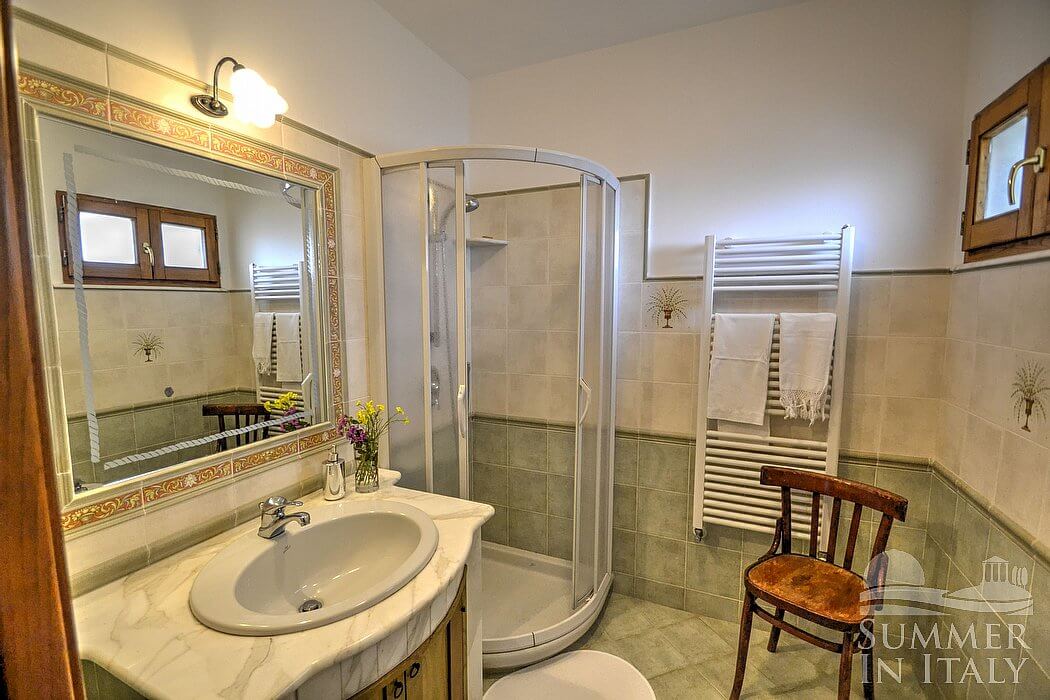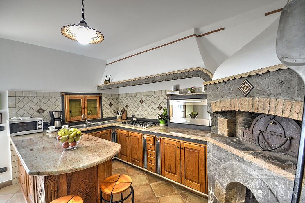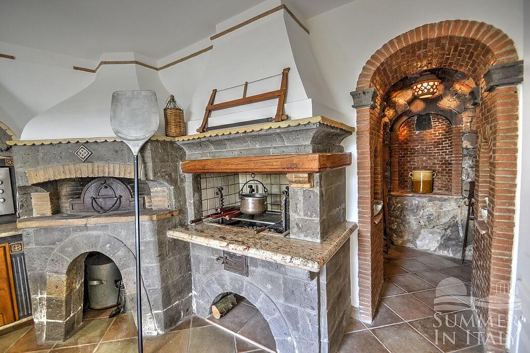 The kitchen is equipped with a six-burner gas cooker, an electric oven, a large refrigerator with freezer, a dishwasher, an Italian-style coffee-maker and an American-style coffee-maker (bring your filters!). There is also a brickwork barbecue and a wood-fired pizza oven. From the kitchen a French door will take you to the patio and the garden. The kitchen is equipped with an air conditioning/heating unit.