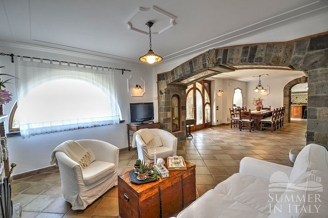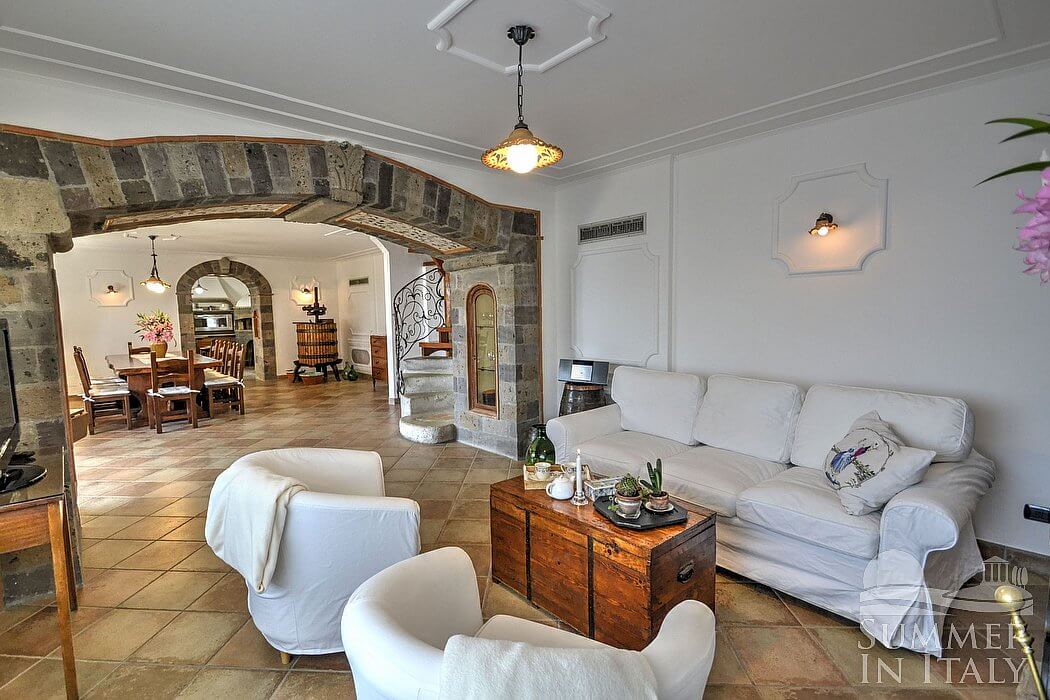 Villa Esposito is a characteristic two-story villa located on a hillside, facing the sea. It sleeps nine people. From Villa Esposito you will enjoy an enchanting view of the sea and of the coastline. Villa Esposito is 170 square meters (1830 square feet). It features a private swimming pool, a private terrace with a view of the sea, a private garden, air conditioning (please read description below to check in which rooms the units are installed) and winter heating.