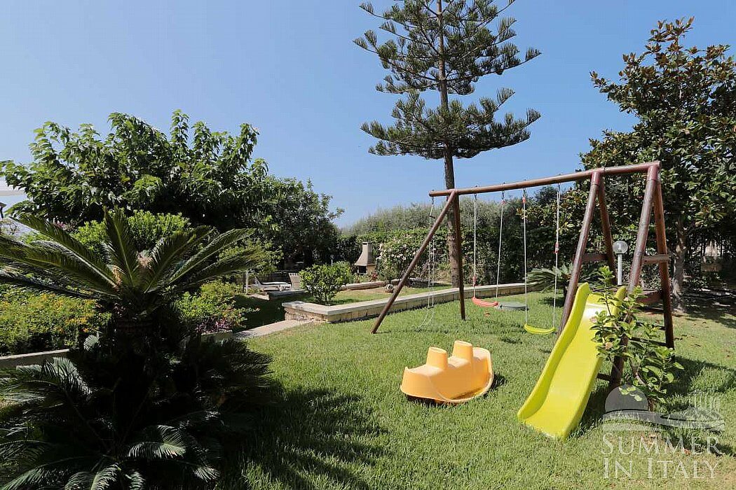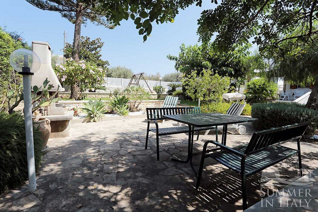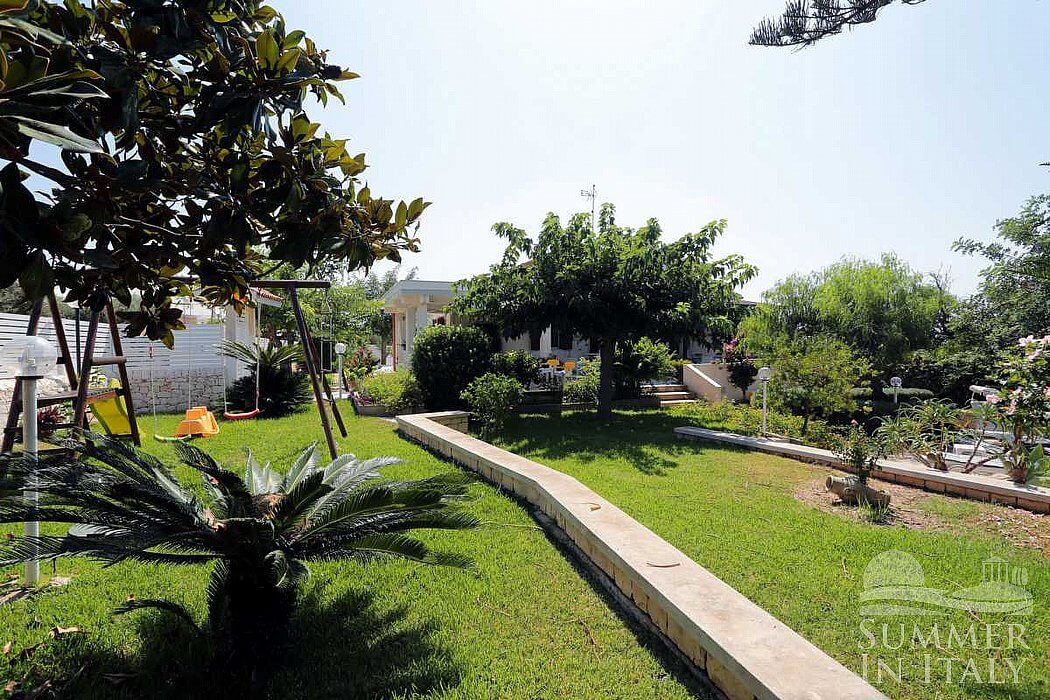 The garden is 1500 square meters (16200 square feet) large. It is partly shaded by perfumed trees. It is equipped with a table, chairs and a swing. Here you will also find a brickwork barbecue. From the garden you will enjoy a nice view of the greenery and, partially, of the sea.