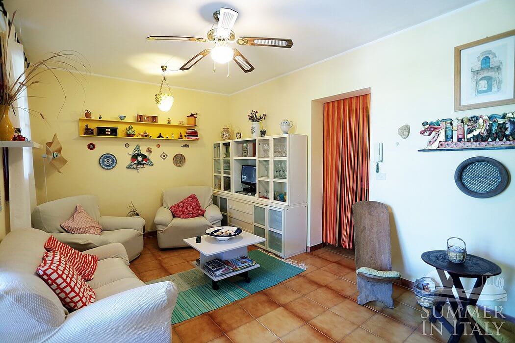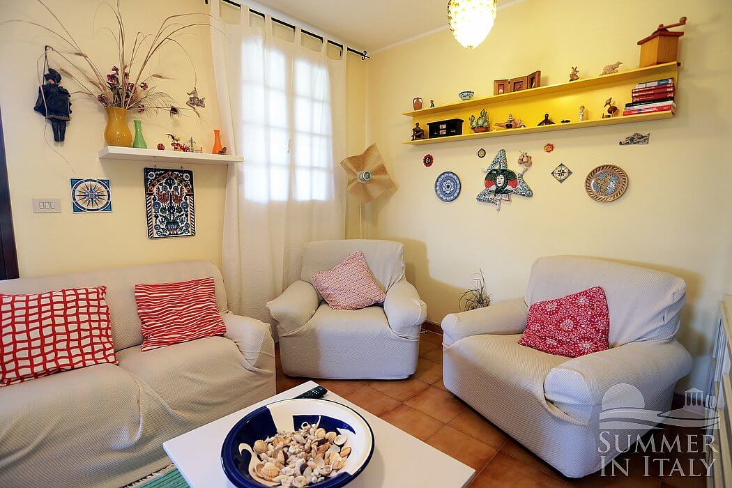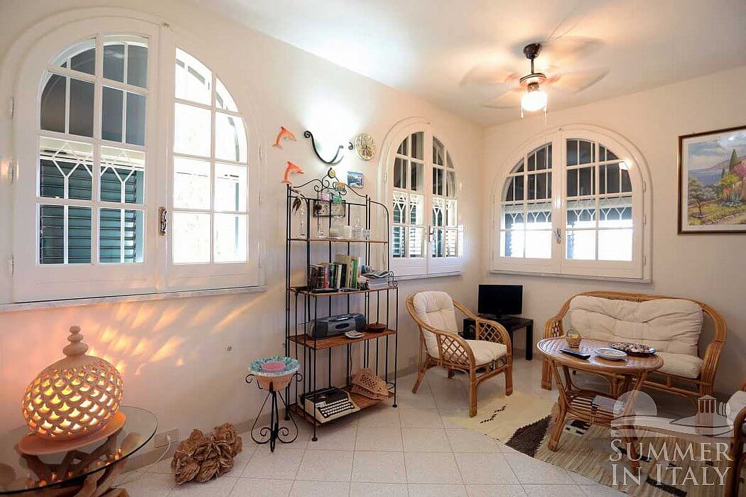 Villa La Rosa dei Venti is a welcoming two-story villa situated at a short distance from the beach. It sleeps six people. From Villa La Rosa dei Venti you will enjoy a charming view of the sea and of the surrounding countryside. Villa La Rosa dei Venti is 160 square meters (1720 square feet). It features a private patio, a private garden, air conditioning (please read description below to check in which rooms the units are installed), winter heating and WI-FI Internet access.