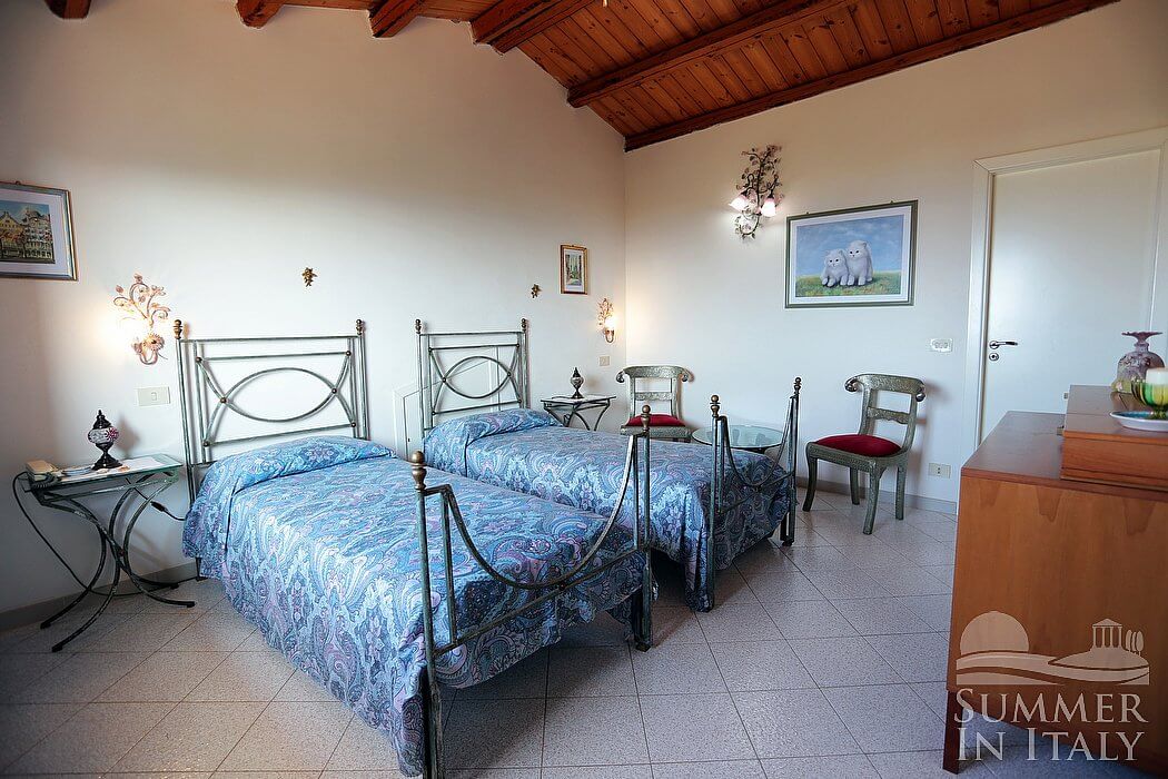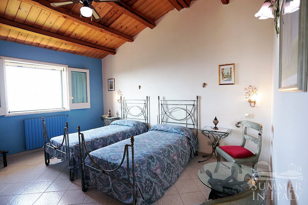 You will be able to enter the third bedroom from the through a corridor. It has two twin beds (80 cm/32 inches). The furnishings include a bedroom chair. The room has a window with a view of the greenery and of the sea at a distance. Here you will also find a ceiling fan.