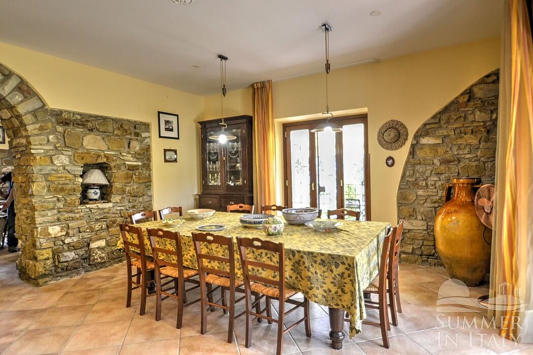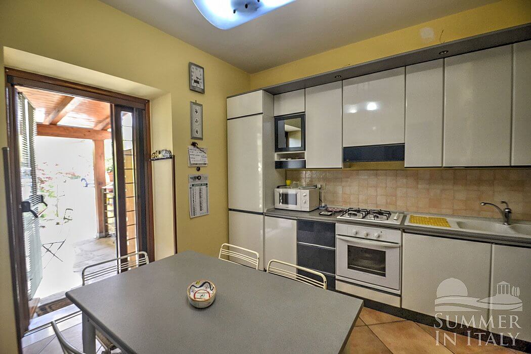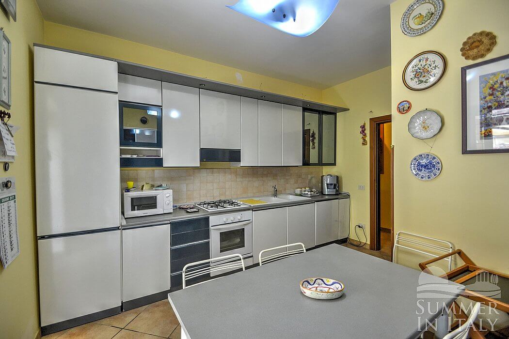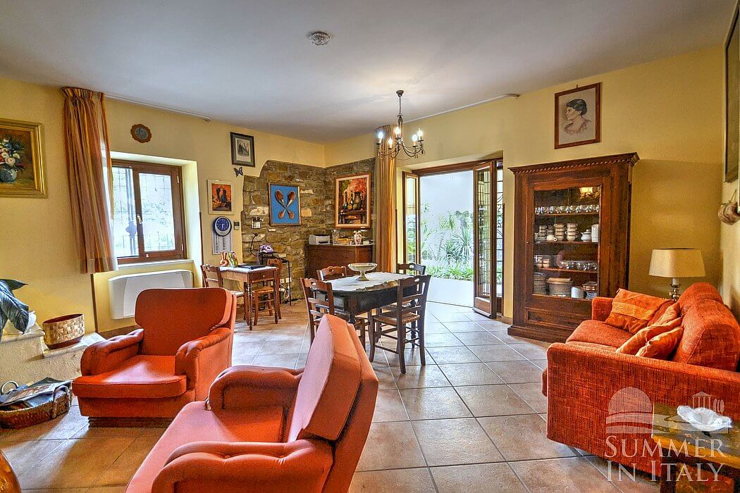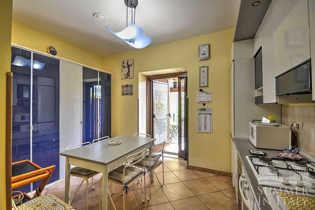 The kitchen is equipped with a four-burner gas cooker, an electric oven, a large refrigerator with freezer, a dishwasher, a microwave oven, an Italian-style coffee-maker and an American-style coffee-maker (bring your filters!). The dining table can accommodate six guests. From the kitchen a French door will take you to the patio and the garden.