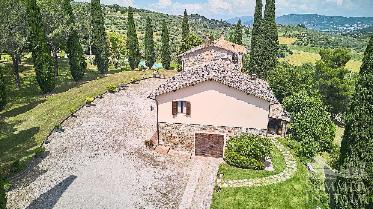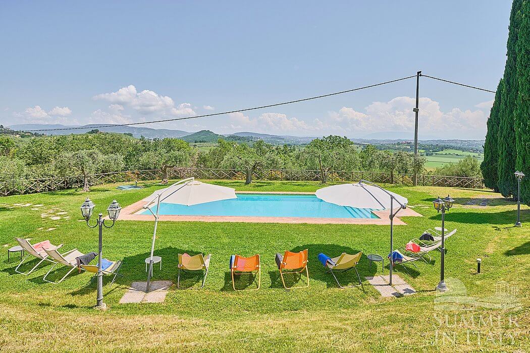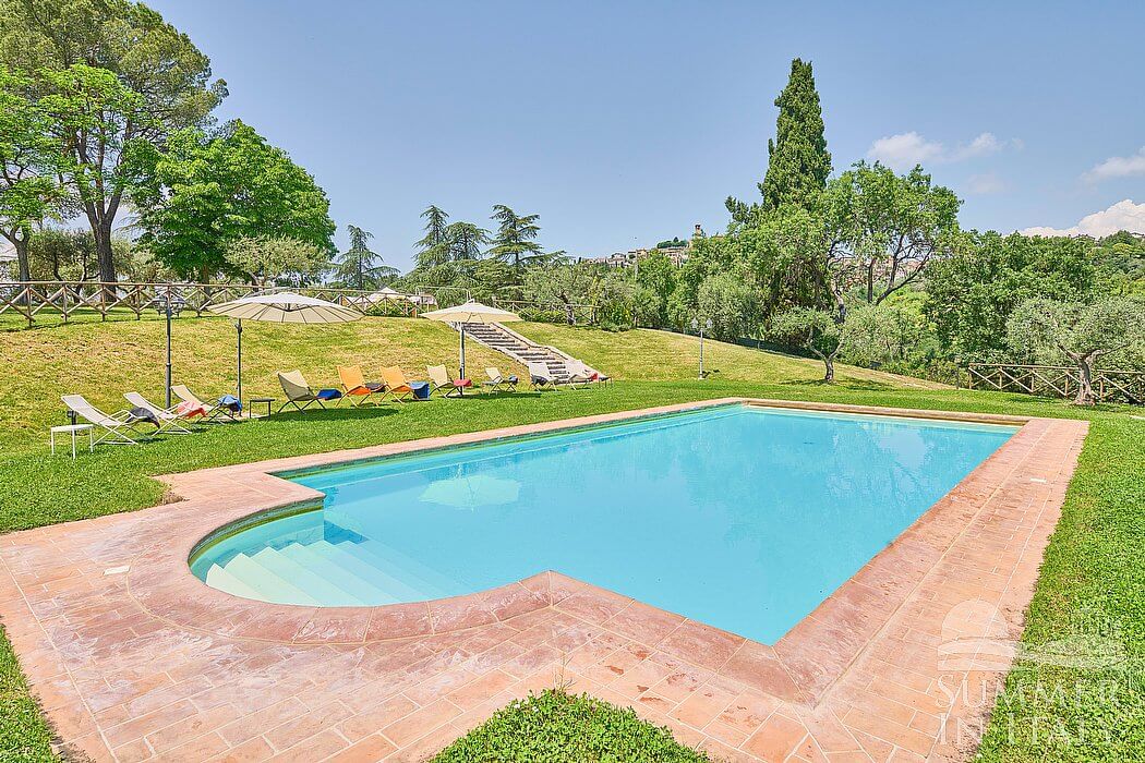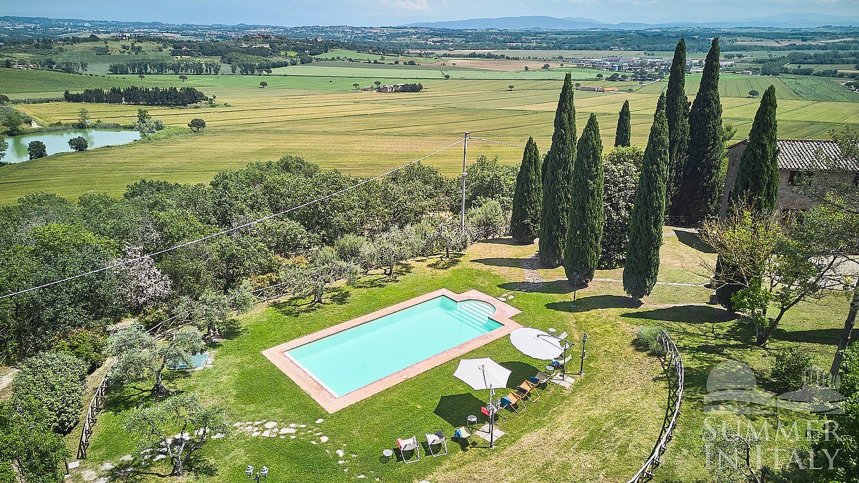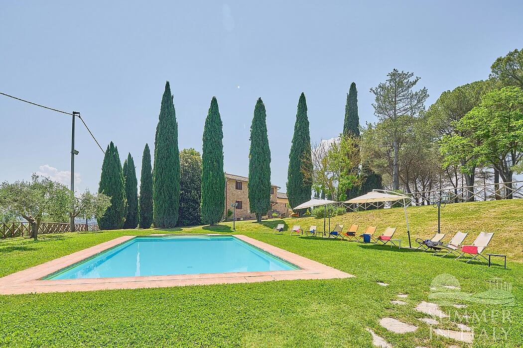 Villa Madonna del Giglio is a characteristic and welcoming three-story ancient house situated a few miles from the shores of Lake Trasimeno. It sleeps ten people. From Villa Madonna del Giglio you will enjoy a charming view of the greenery and of the surrounding hills. Villa Madonna del Giglio is 520 square meters (5600 square feet). It features a private swimming pool, two private patios, a private garden, air conditioning (please read description below to check in which rooms the units are installed), winter heating and WI-FI Internet access.