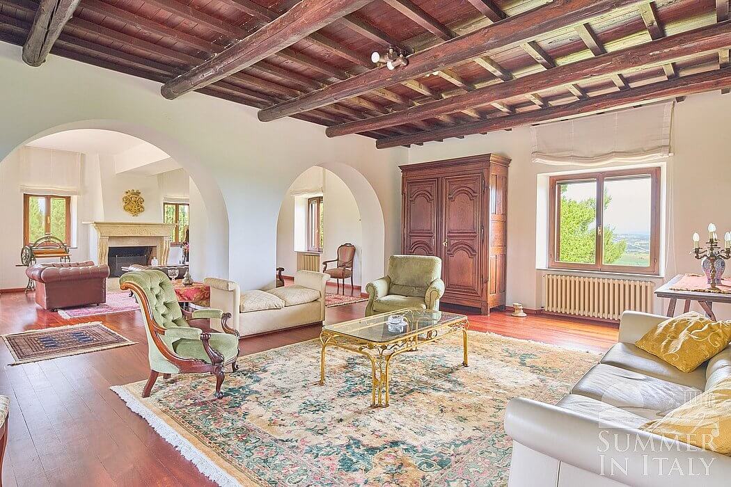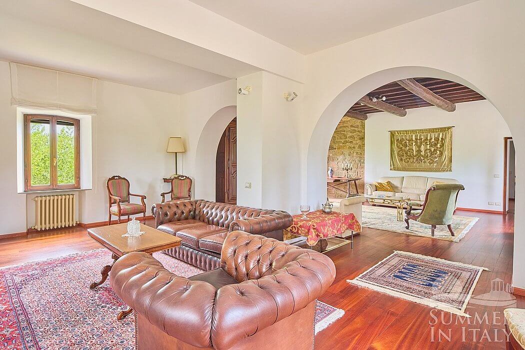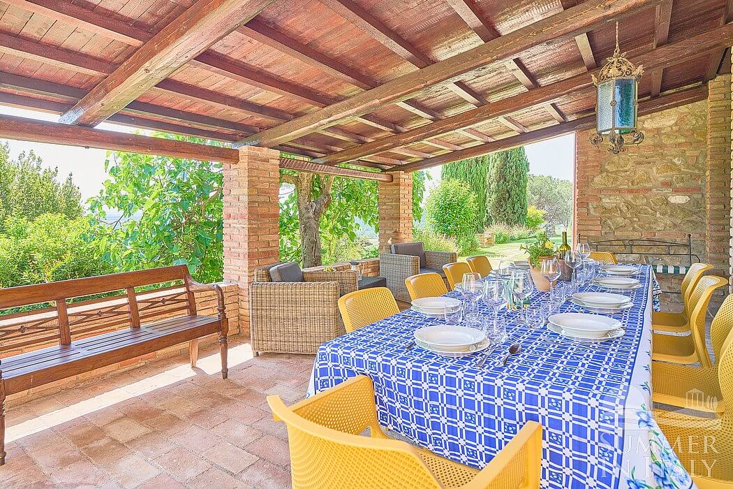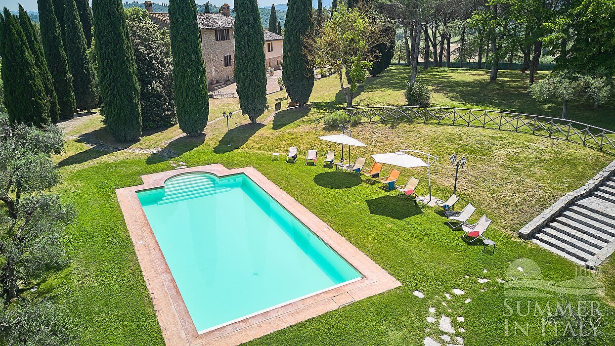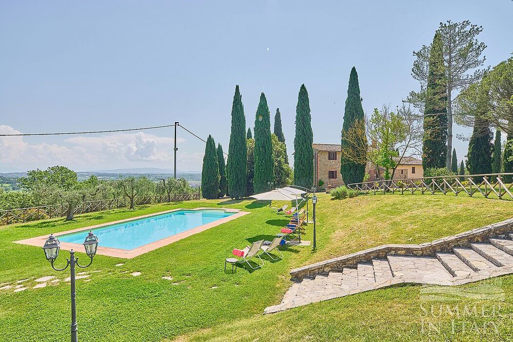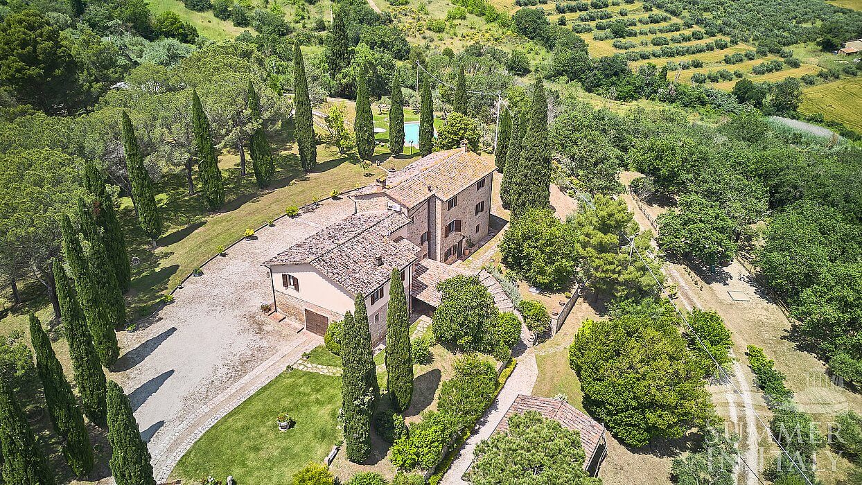 Villa Madonna del Giglio is a characteristic and welcoming three-story ancient house situated a few miles from the shores of Lake Trasimeno. It sleeps ten people. From Villa Madonna del Giglio you will enjoy a charming view of the greenery and of the surrounding hills. Villa Madonna del Giglio is 520 square meters (5600 square feet). It features a private swimming pool, two private patios, a private garden, air conditioning (please read description below to check in which rooms the units are installed), winter heating and WI-FI Internet access.