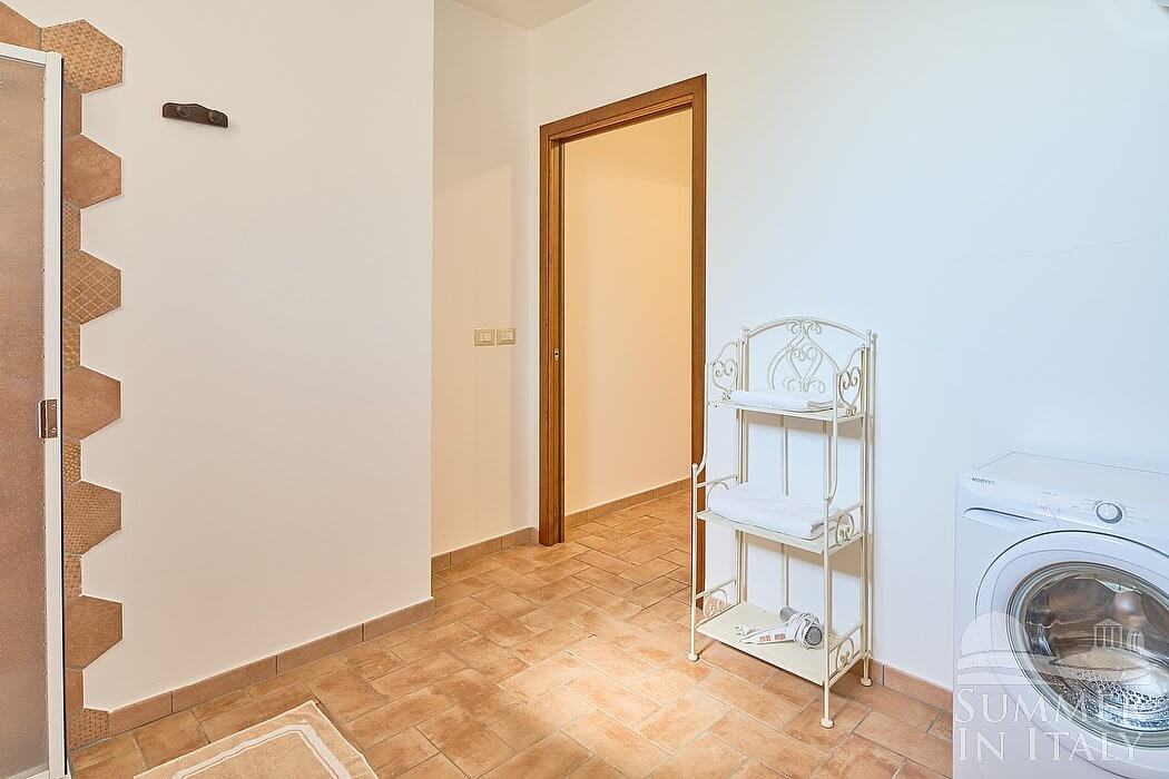 You will be able to enter the second kitchen from the dining room climbing three steps. It is equipped with a five-burner gas cooker, an electric oven, a refrigerator with freezer, a dishwasher, an Italian-style coffee-maker and a toaster. Here you will also find a washing machine (hidden in a utility room), an iron and an ironing board. The dining table can accommodate four guests. The kitchen has a window.