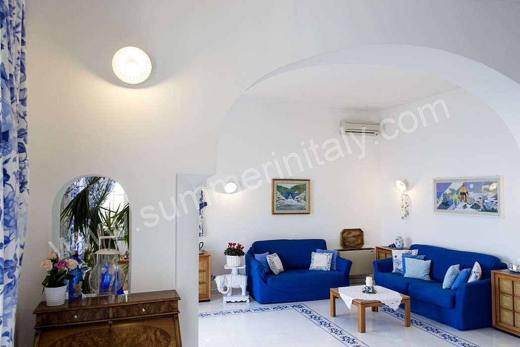 Villa Poesia is a splendid and luminous two-story villa built sheer above the sea. It sleeps four people. From Villa Poesia you will enjoy a breathtaking view of the sea, of Praiano and the coast of Amalfi. Villa Poesia is 120 square meters (1290 square feet). It features two wide private terraces with a view of the sea, a private garden, air conditioning (please read description below to check in which rooms the units are installed), winter heating and WI-FI Internet access.