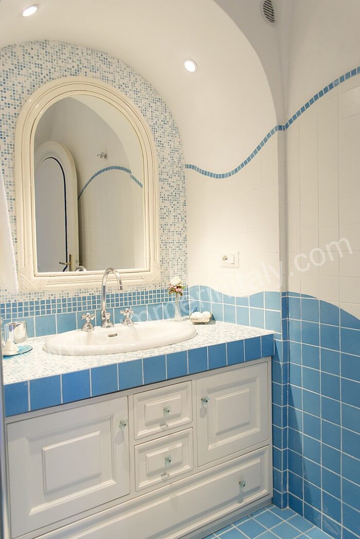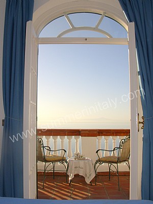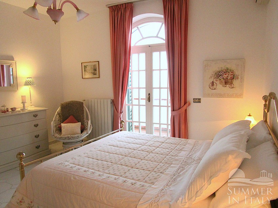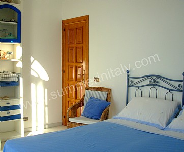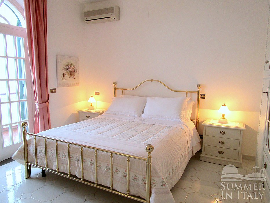 You will be able to enter the first bedroom from the corridor. The furnishings are romantic and elegant. The room has a matrimonial bed (160 cm/62 inches, wider than a queen-size bed). The furnishings include an armchair. In this room you will find a satellite television (local channels). From the bedroom you will be able to enter the second terrace with a view of the sea and of the coast of Amalfi through a French door. The bedroom is equipped with an air conditioning/heating unit.