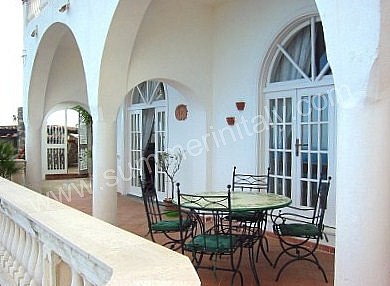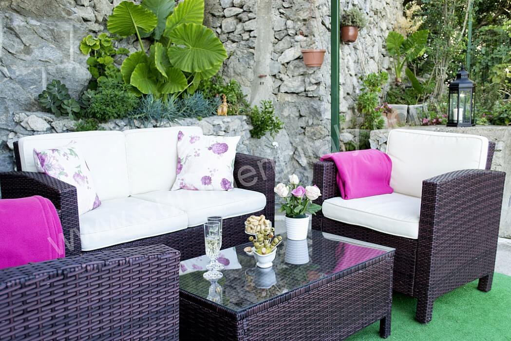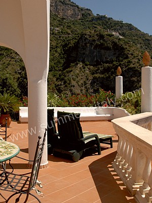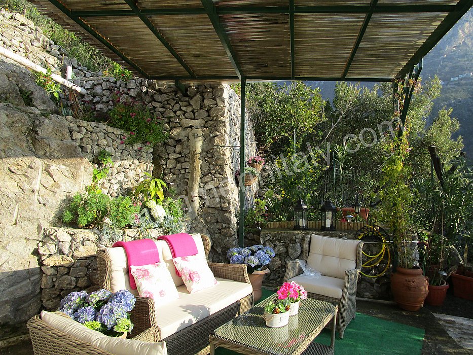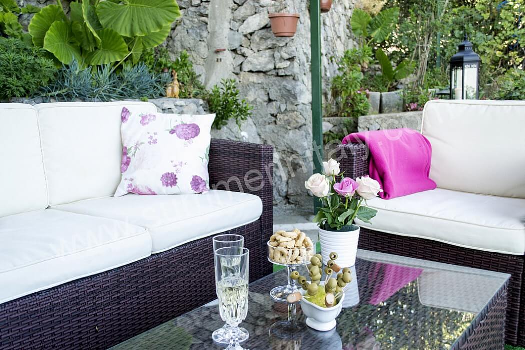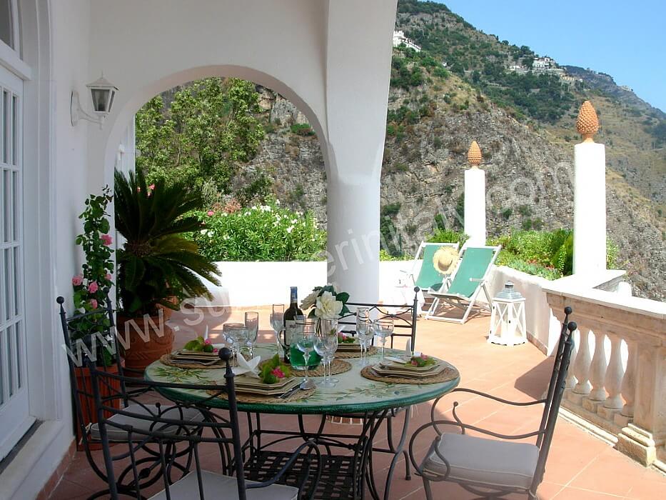 The terrace of Villa Poesia, with its elegant arched roof, its white columns, the flowers, the elegant furnishing, is a perfect framework to enjoy so much beauty in peace and relax. It is indeed a nice place to spend your holidays, a place that is worth to be discovered, even if you will have to walk and to climb some steps to get there. As a matter of fact, the villa is at the top of the village of Praiano, in a pedestrian precinct. To reach it you will have to walk for approximately 200 meters (220 yards) and to climb 160 steps. It is a walk that will allow you to discover an authentic and untouched corner of the Amalfi Coast, one of those that made the area deserve the title of “World Heritage Site” awarded by UNESCO. Indeed, this area has not been changed to please the masses of tourists, here you will not find shops but only authentic locals, which will welcome you with courtesy and liking. Don’t be surprised if the people that you meet in the street will say hello even if they don’t know you! Just say hello to them and smile back!