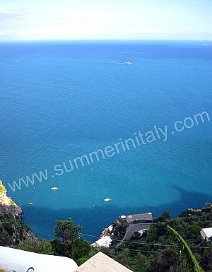 If you let your sight wander, you will see a wide horizon of sky, sea and coast, up to the characteristic cape of Conca dei Marini, which divides Praiano from Amalfi.