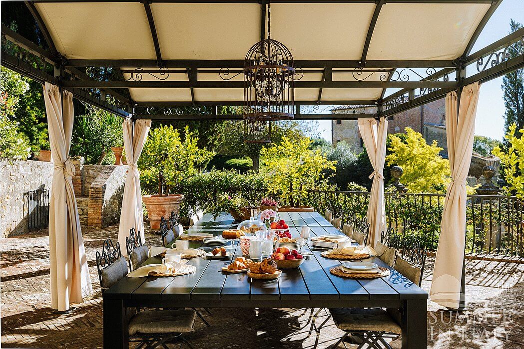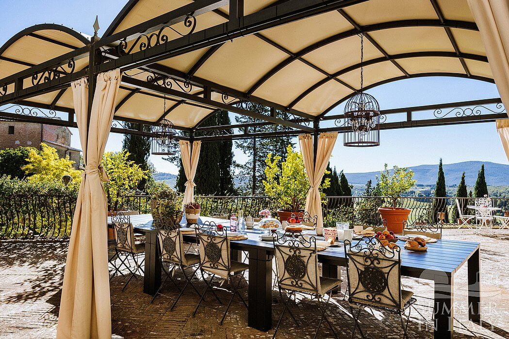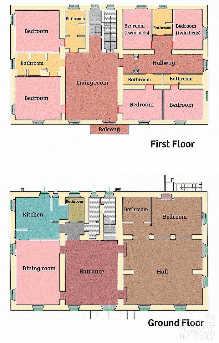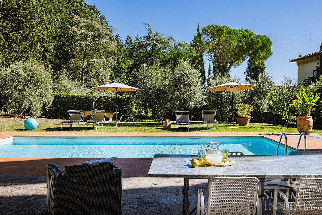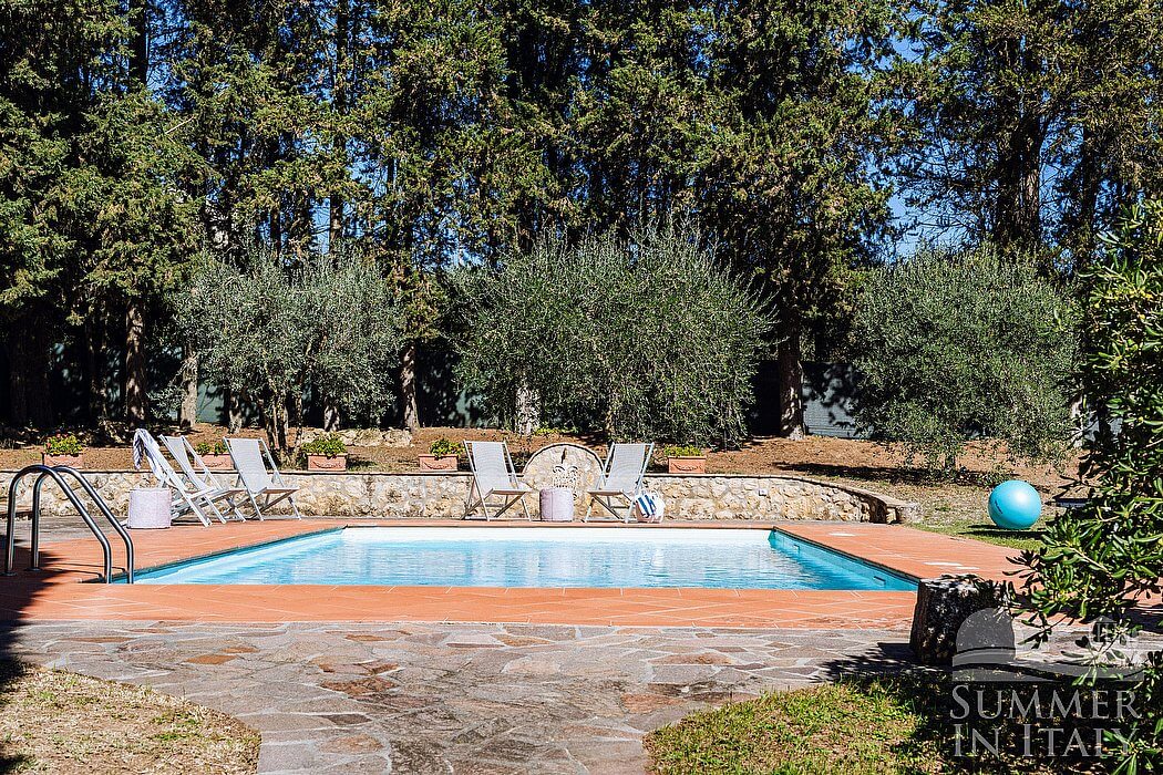 Villa Santa Lucia is a splendid seventeenth-century three-story villa located on top of a small hill. It sleeps 14 people. From Villa Santa Lucia you will enjoy a wonderful view of the Senesi hills. Villa Santa Lucia is 500 square meters (5380 square feet). It features a private swimming pool, a private garden, air conditioning (please read description below to check in which rooms the units are installed), winter heating and WI-FI Internet access.