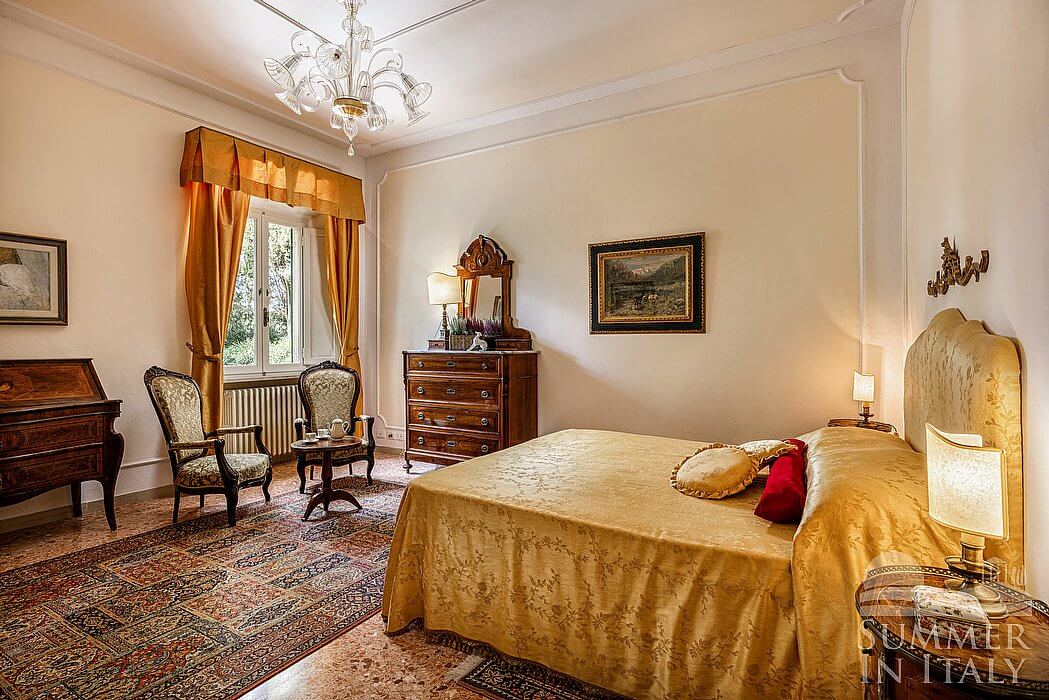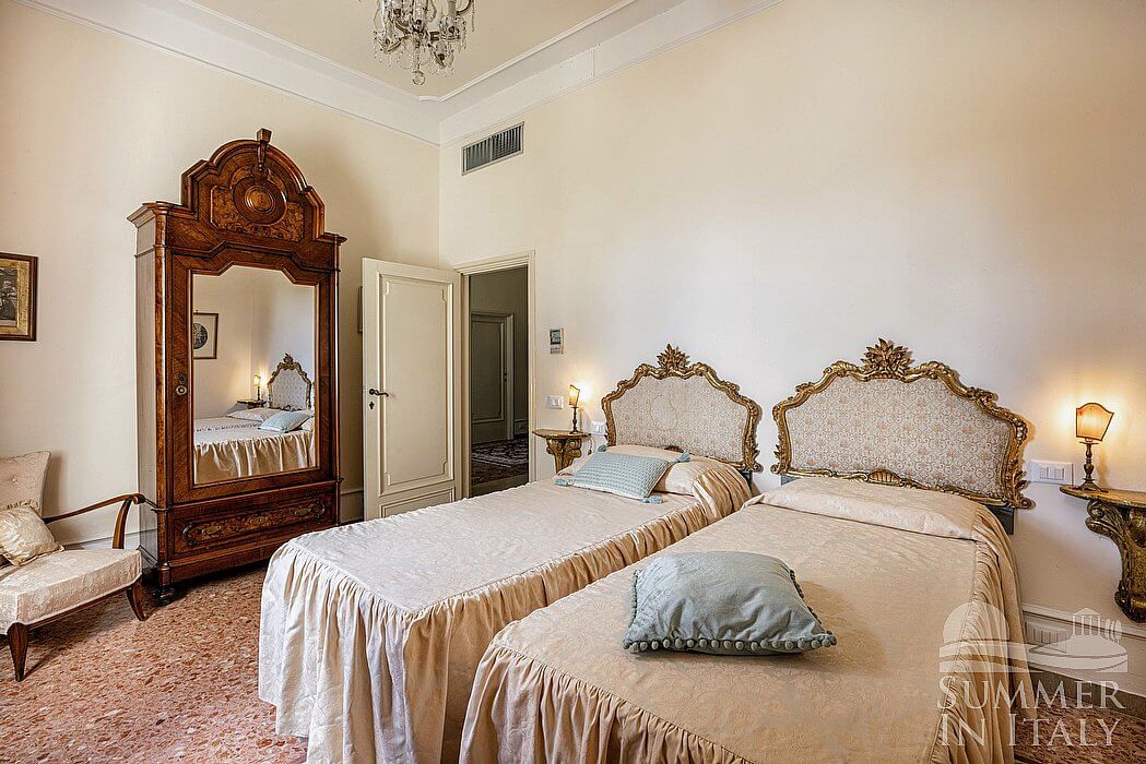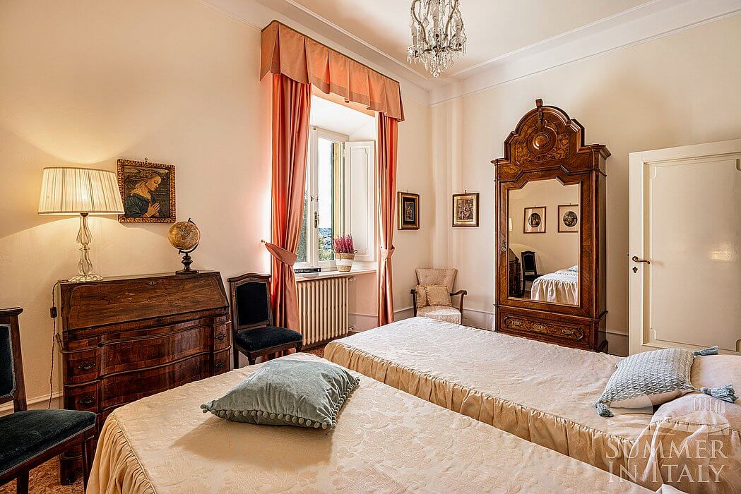 You will be able to enter the seventh bedroom from the corridor. It has two twin beds (80 cm/32 inches), that can be pushed together into a matrimonial bed if requested (please contact our staff in advance to make arrangements). The room has a window which overlooks the back of the house, and it's equipped with an air conditioning/heating unit.