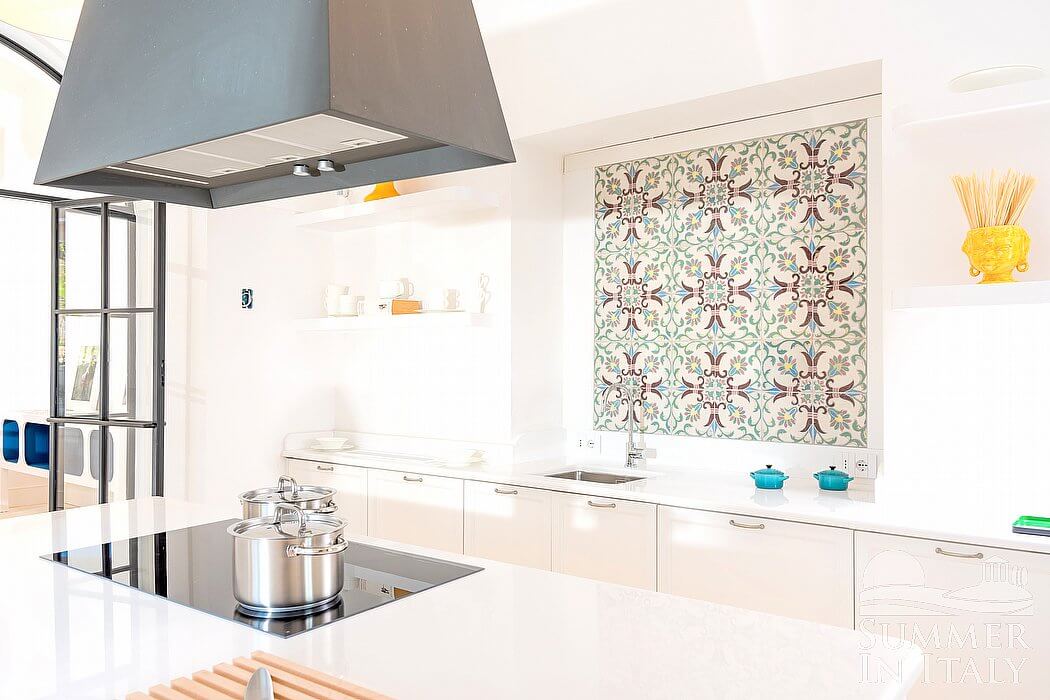 You will be able to enter the first kitchen from the first dining room. It is equipped with a six-burner induction cooker, an electric oven, an American-style refrigerator with ice-maker, a dishwasher, a microwave oven, an Italian-style coffee-maker, an American-style coffee-maker and a kettle. From the kitchen two French doors will take you to the first patio and the garden. The kitchen is equipped with an air conditioning/heating unit.