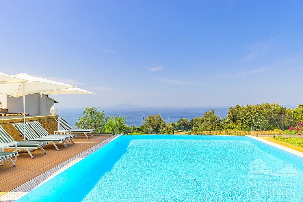 Villa Siri is a charming and bright two-story historical villa surrounded by a lemon and orange garden. It sleeps 17 people. From Villa Siri you will enjoy a wonderful view of the sea and of the island of Capri. Villa Siri is 600 square meters (6460 square feet). It features two private swimming pools, two private terraces, two private patios, a private garden, air conditioning (please read description below to check in which rooms the units are installed), winter heating and WI-FI Internet access.