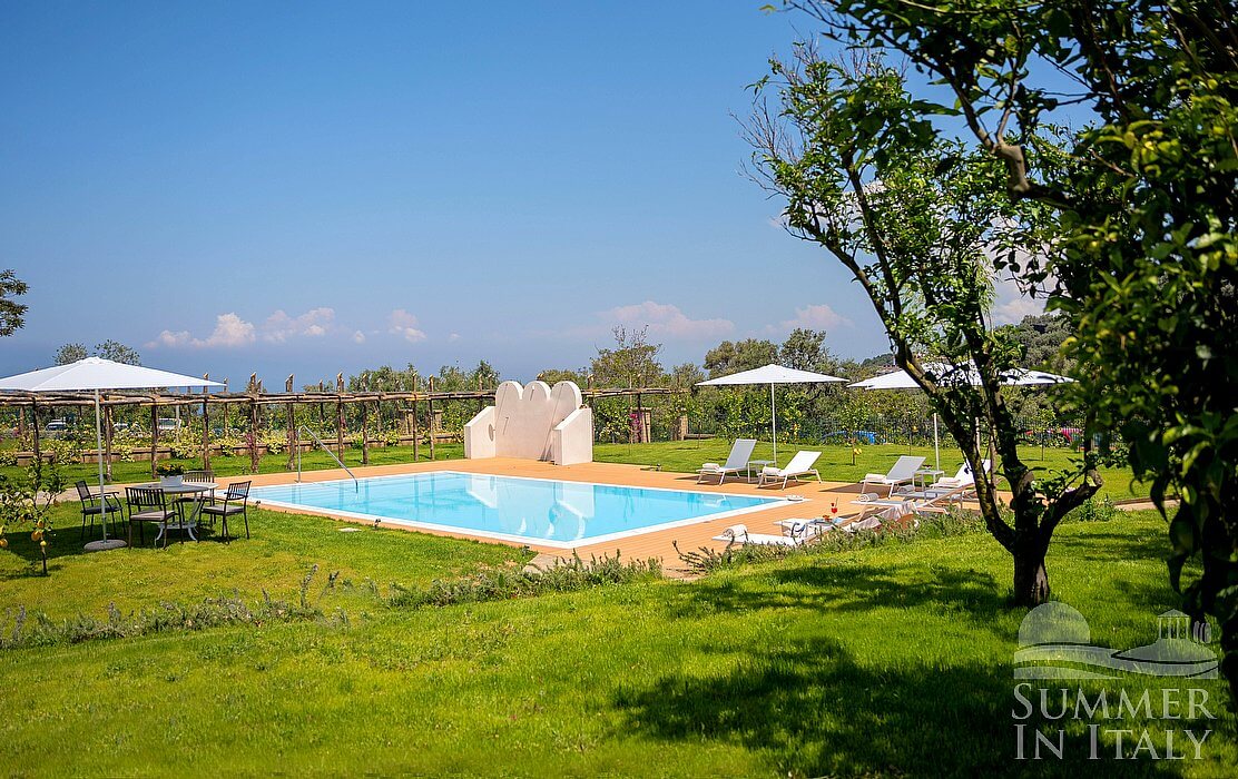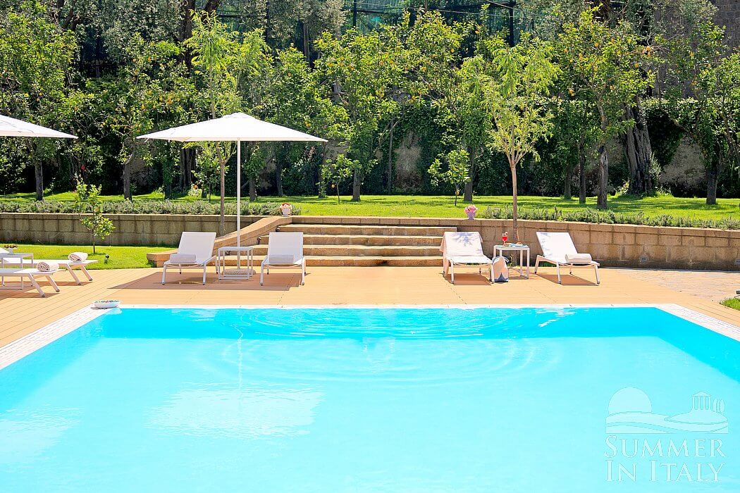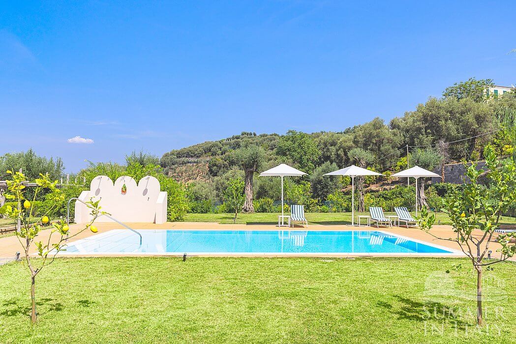 The swimming pool is 6 meters (20 feet) large by 9 meters (30 feet) long, 1.5 meters (5 feet) deep. The area is equipped with sun umbrellas, sun loungers and external showers. From the swimming pool you will enjoy a broad view of the garden. The pool is open from the beginning of April until the end of October.