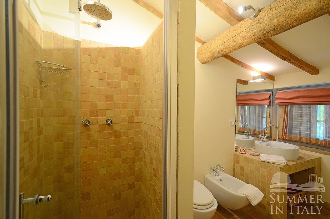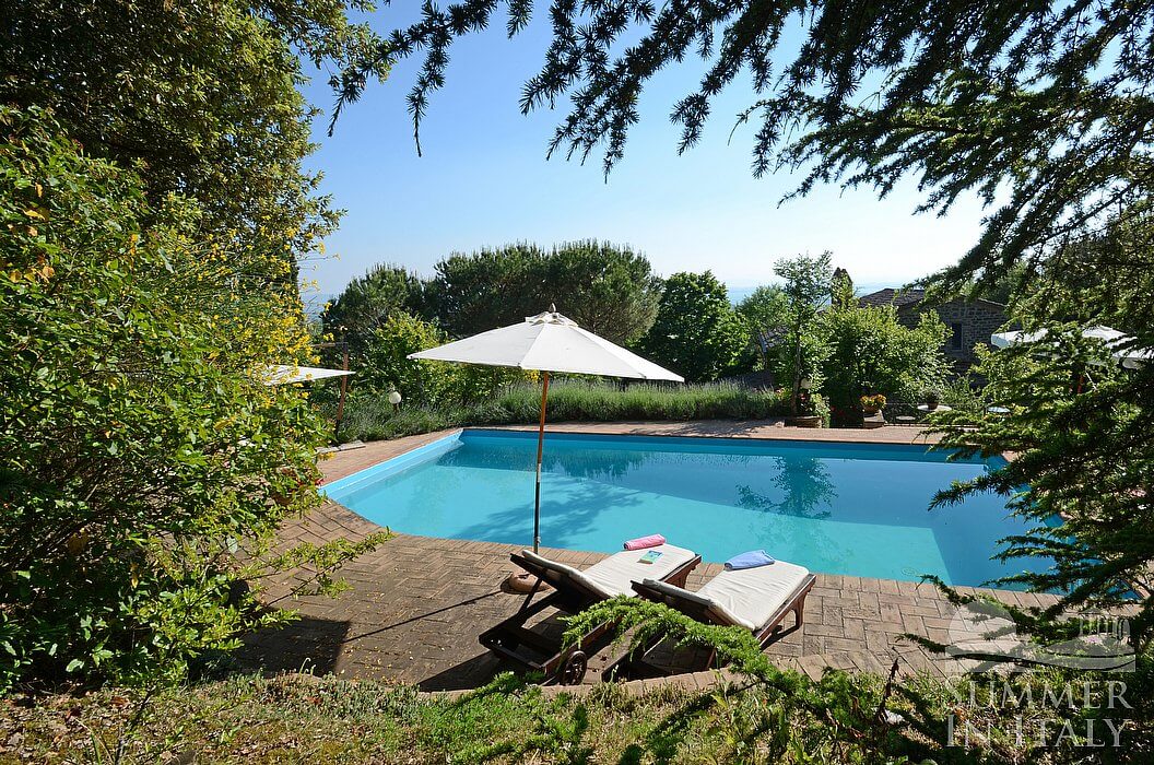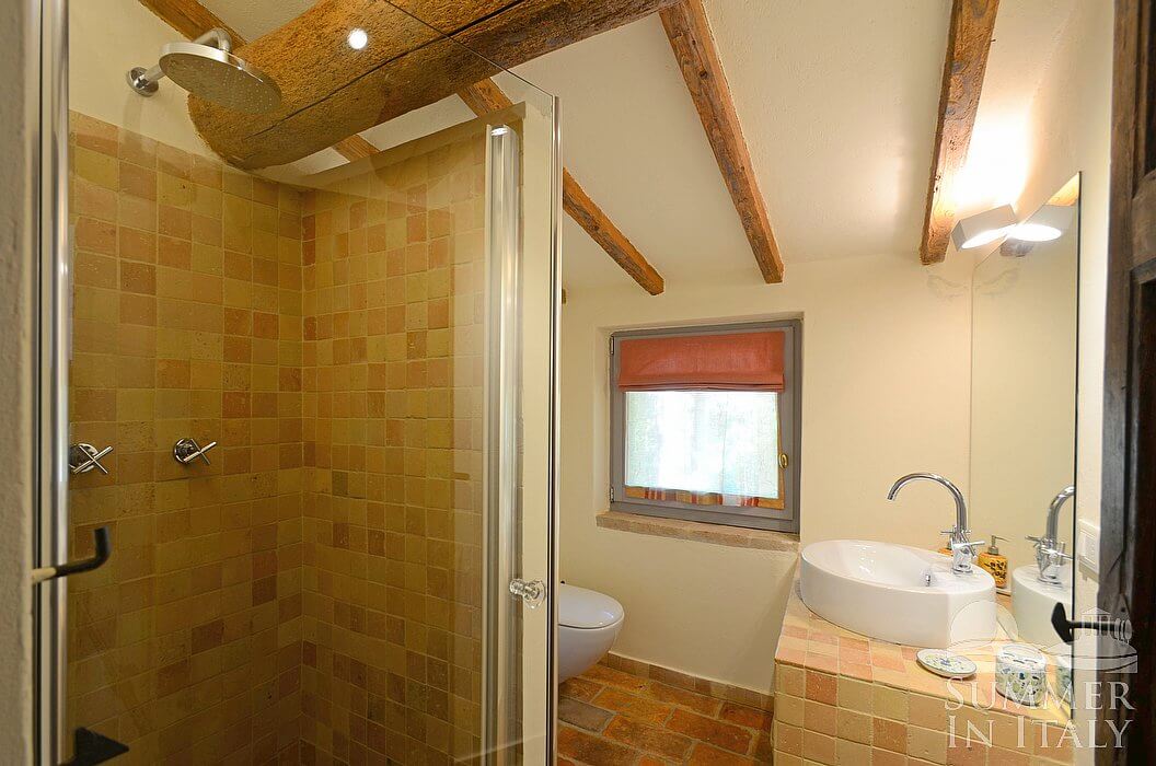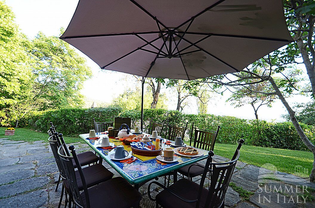 Villa Toppello is a characteristic and welcoming two-story villa made of stone and situated a few miles from the shores of Lake Trasimeno. It sleeps eight people. From Villa Toppello you will enjoy a spellbinding view of the lake and of the greenery. Villa Toppello is 280 square meters (3000 square feet). It features a private swimming pool, a private terrace, a private patio, a private garden, air conditioning (please read description below to check in which rooms the units are installed), winter heating and WI-FI Internet access.